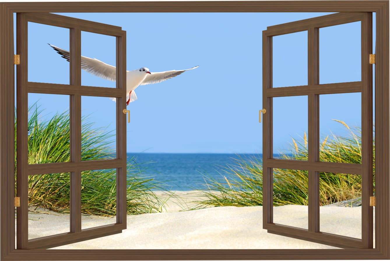 Naklejki na ścianę okno z widokiem plaża morze mewa