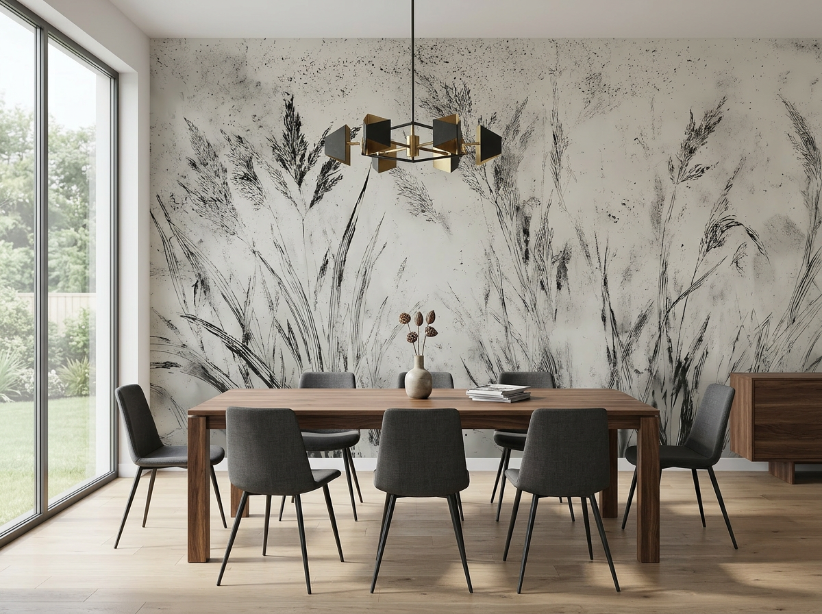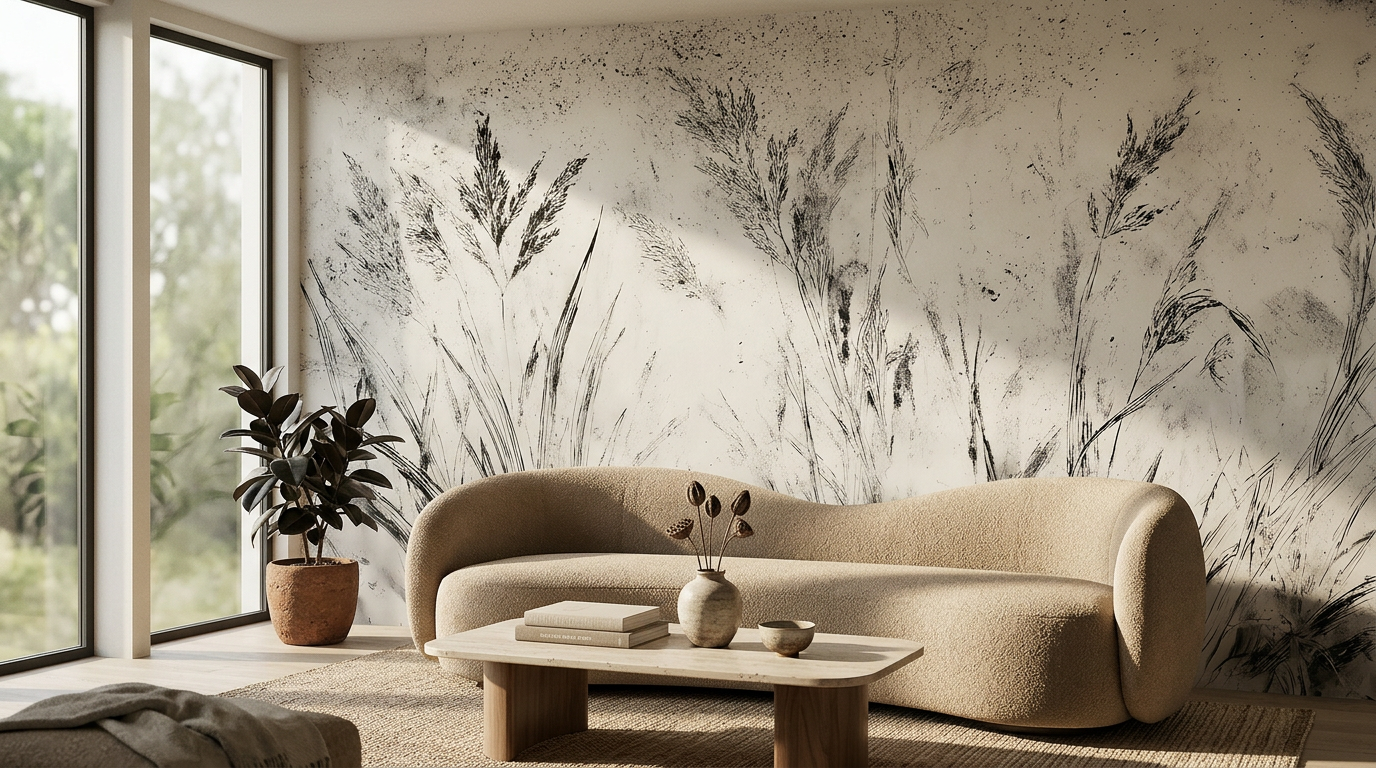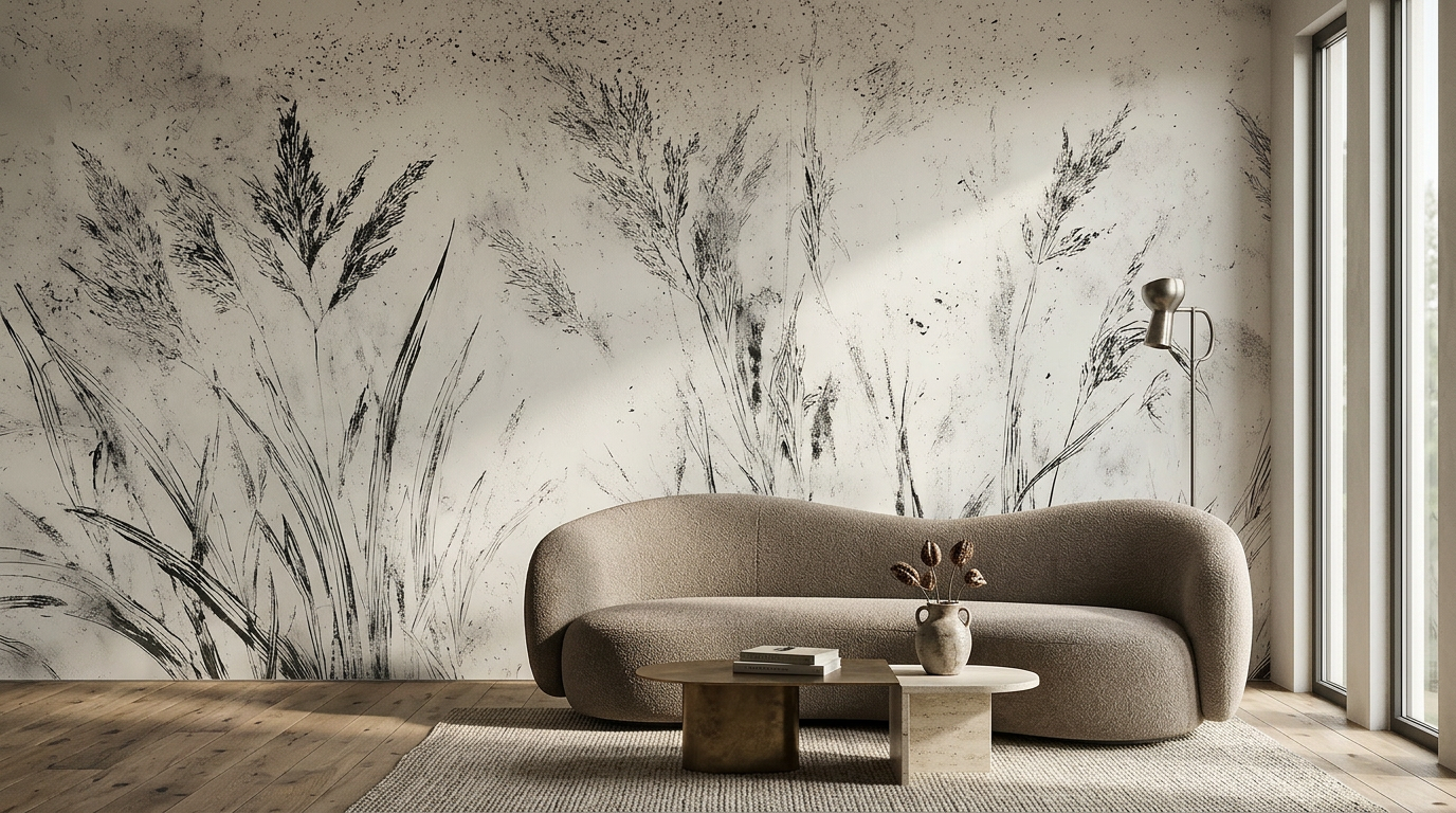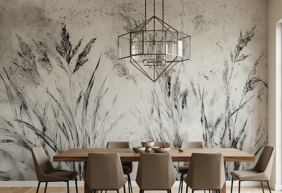 Nowoczesna fototapeta z motywem traw – minimalistyczny szkic w stylu japandi NERA