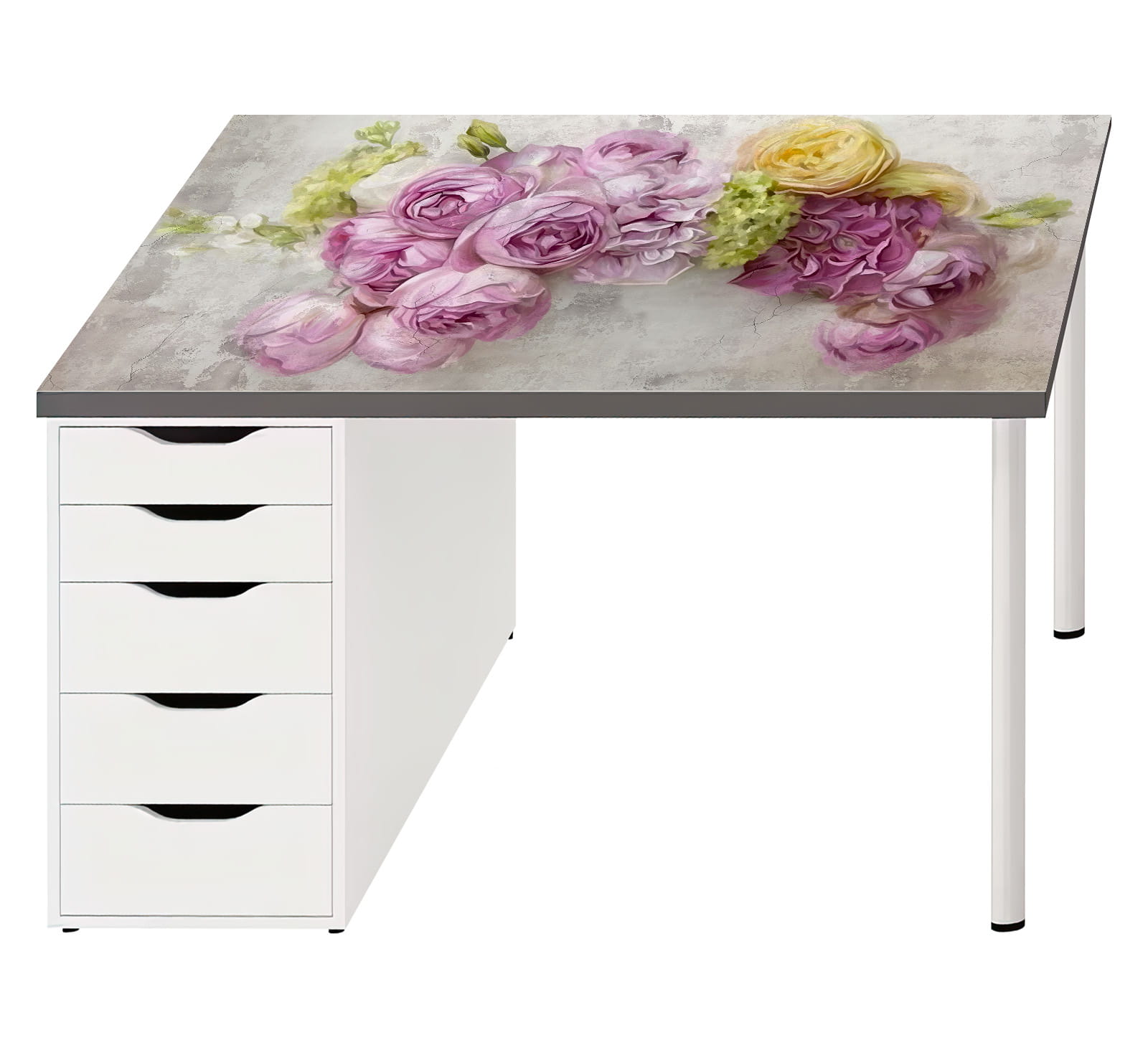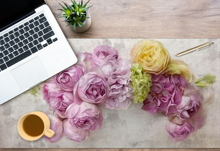 Nowoczesna mata ochronna na biurko kwiaty beton