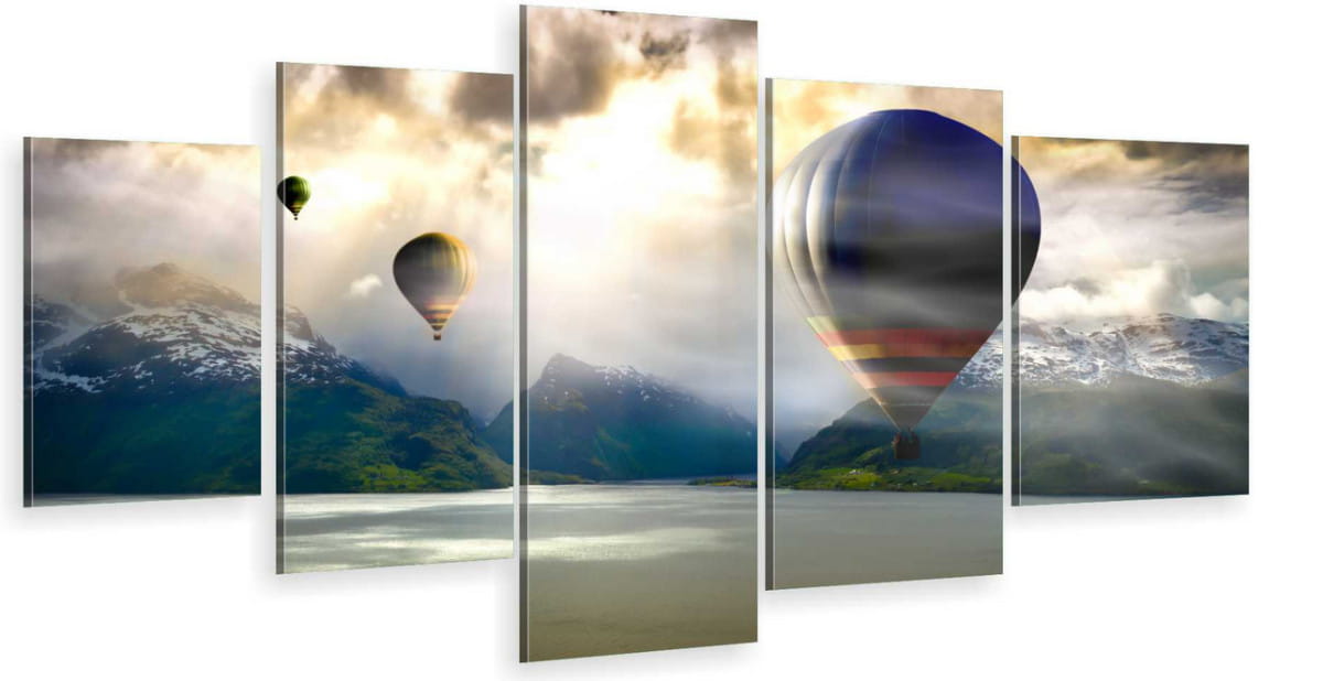 OBRAZ 5 CZĘŚCIOWY NA PŁÓTNIE CANVAS balony góry wzgórza lot