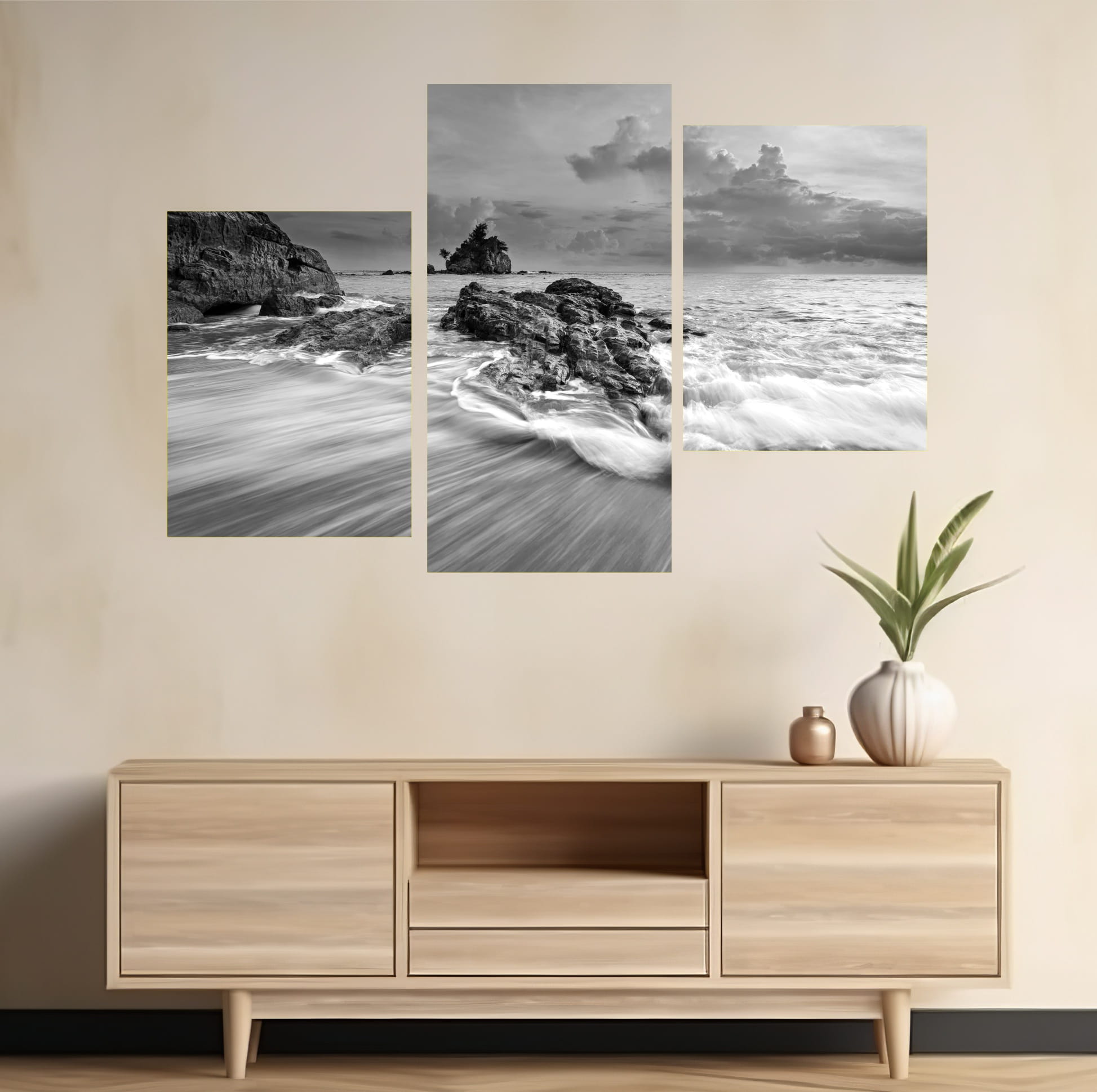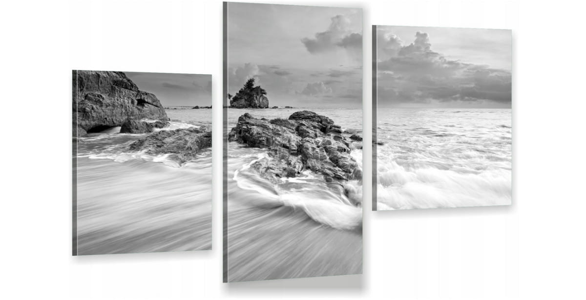 OBRAZ NA PŁÓTNIE VZARNO BIAŁY FALE NAD BAŁTYKIEM MORZE