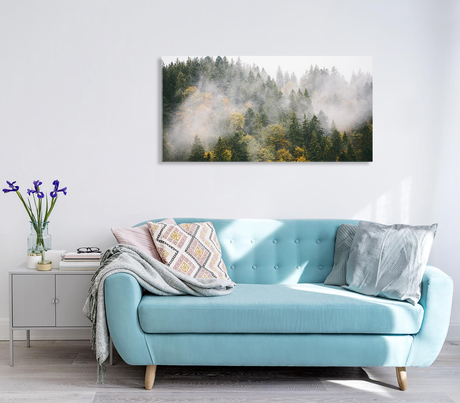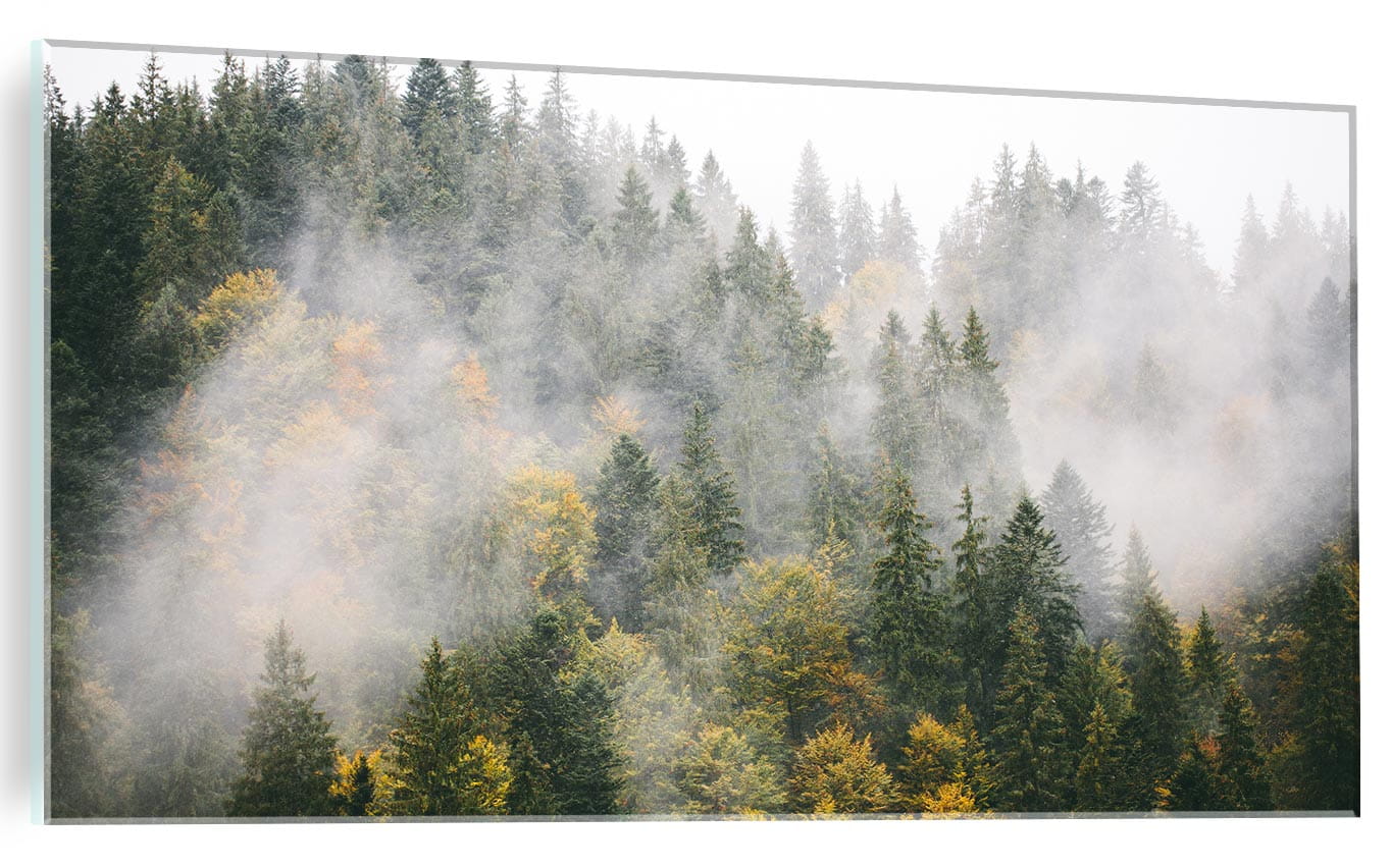 OBRAZ NA SZKLE SZKLANY DO SALONU LAS DRZEWA MGŁA NATURA