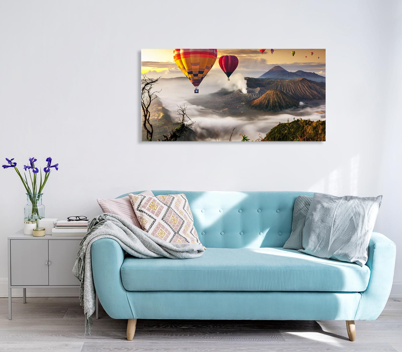OBRAZ NA SZKLE SZKLANY ŚCIENNY BALONY NAD GÓRAMI WIDOK