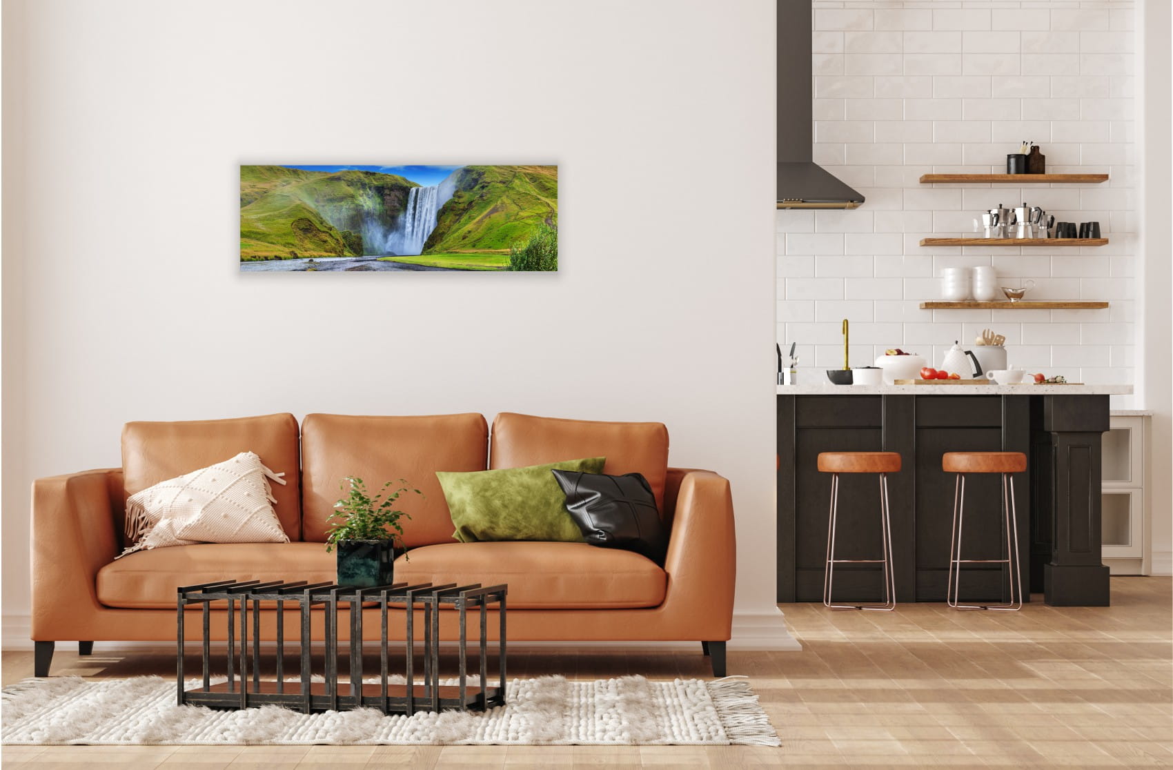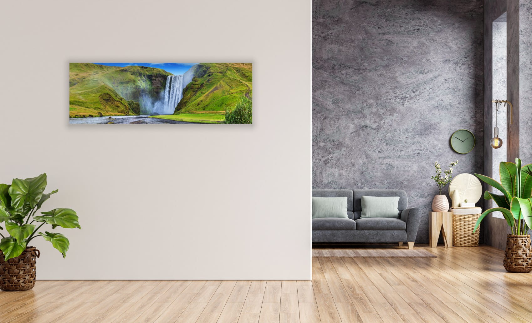 OBRAZ PANORAMICZNY dekoracyjny PANORAMA góra potok wodospad
