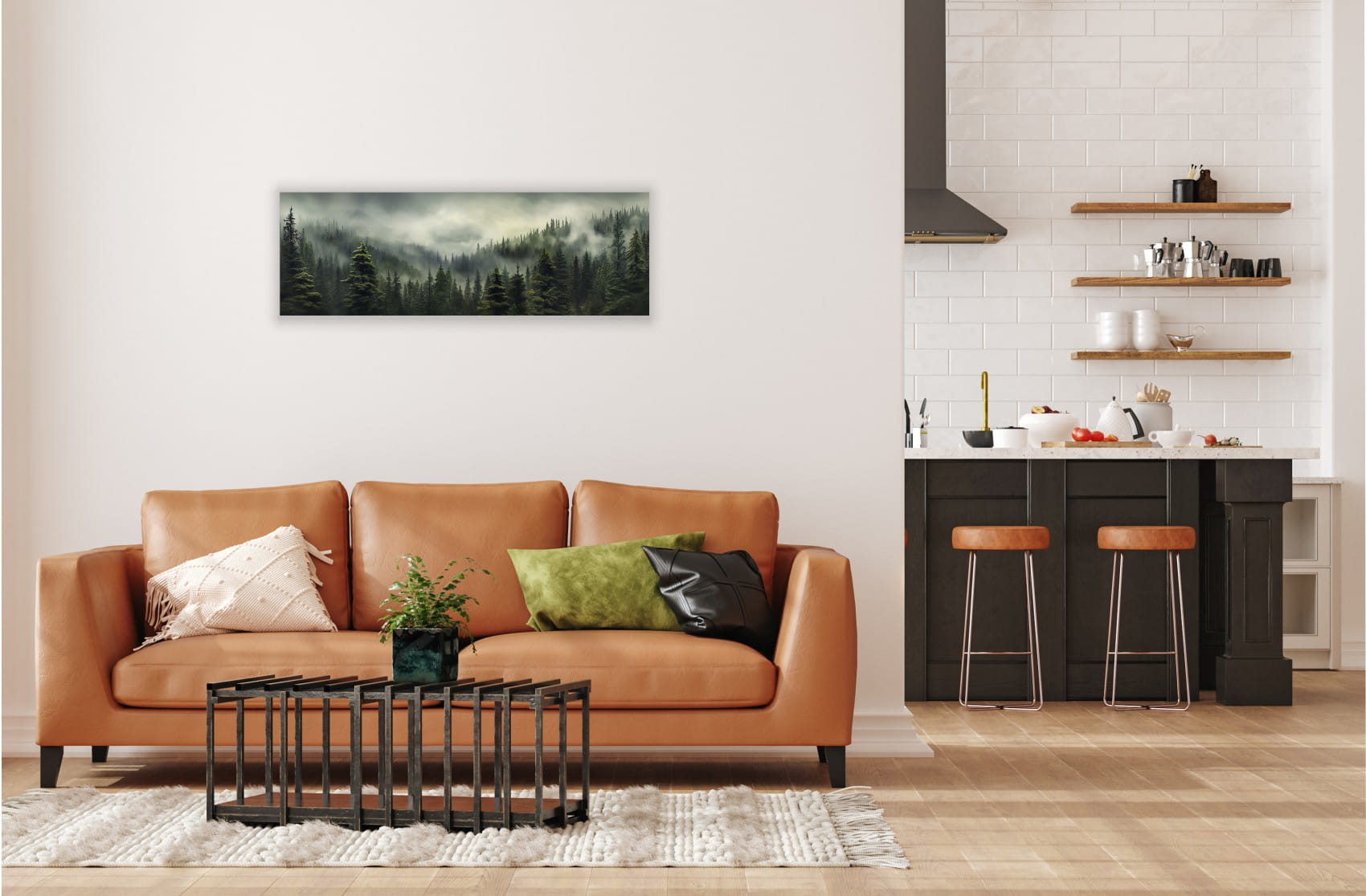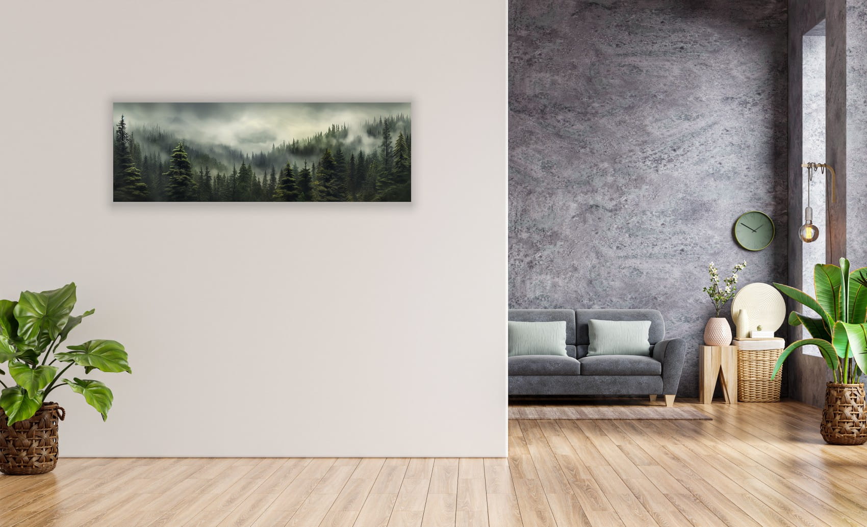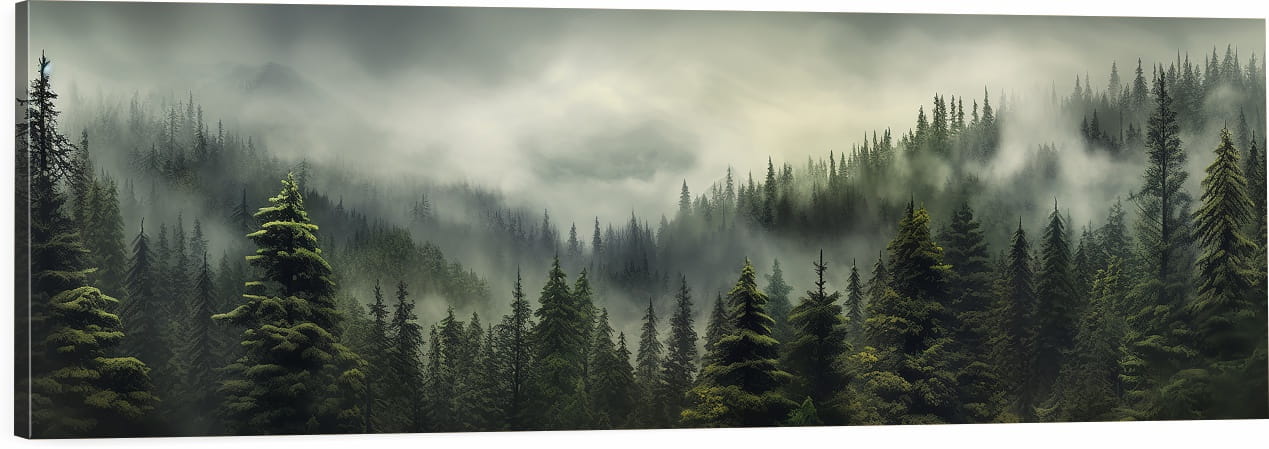 OBRAZ PANORAMICZNY dekoracyjny PANORAMA las za mgłą