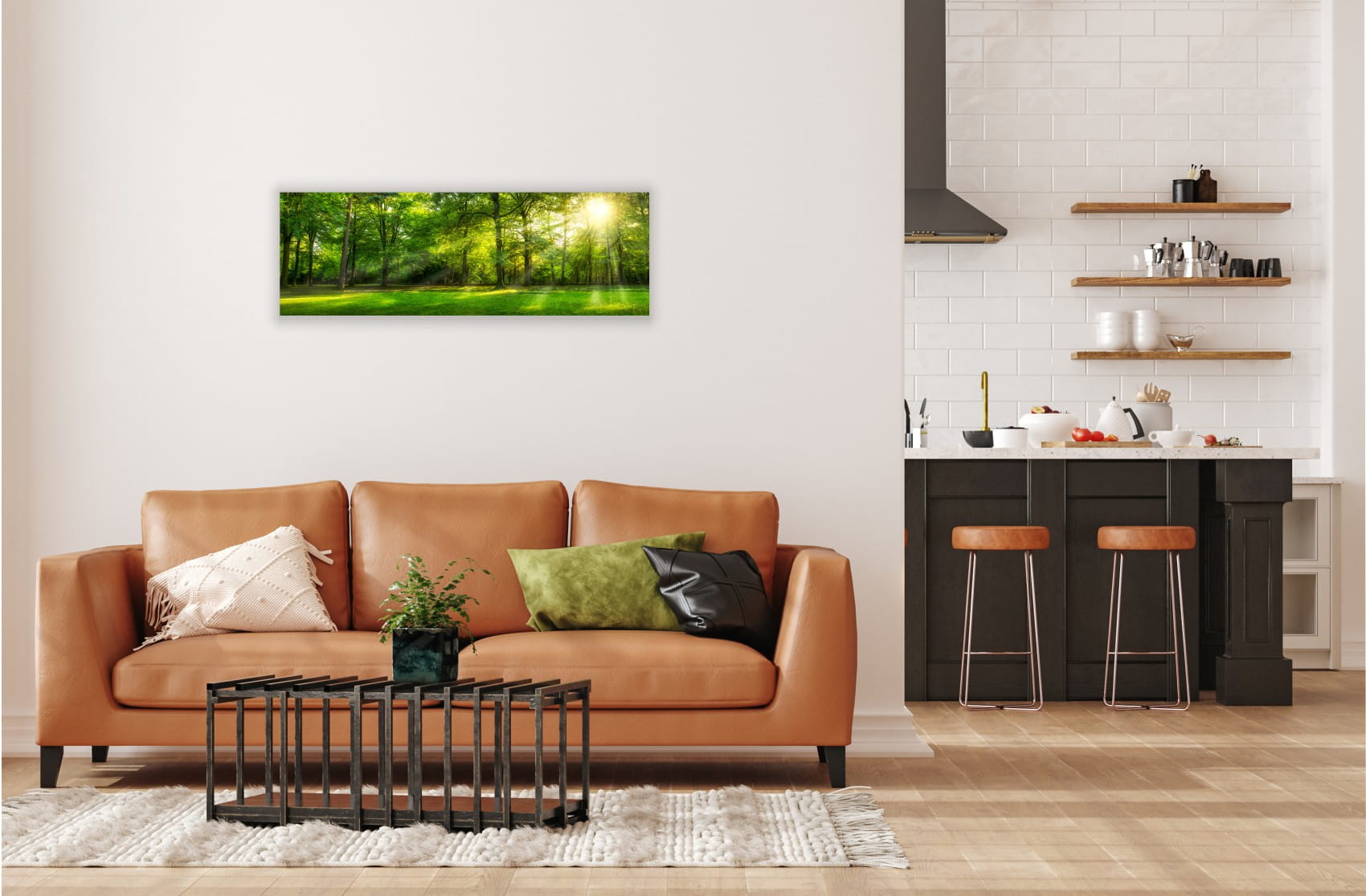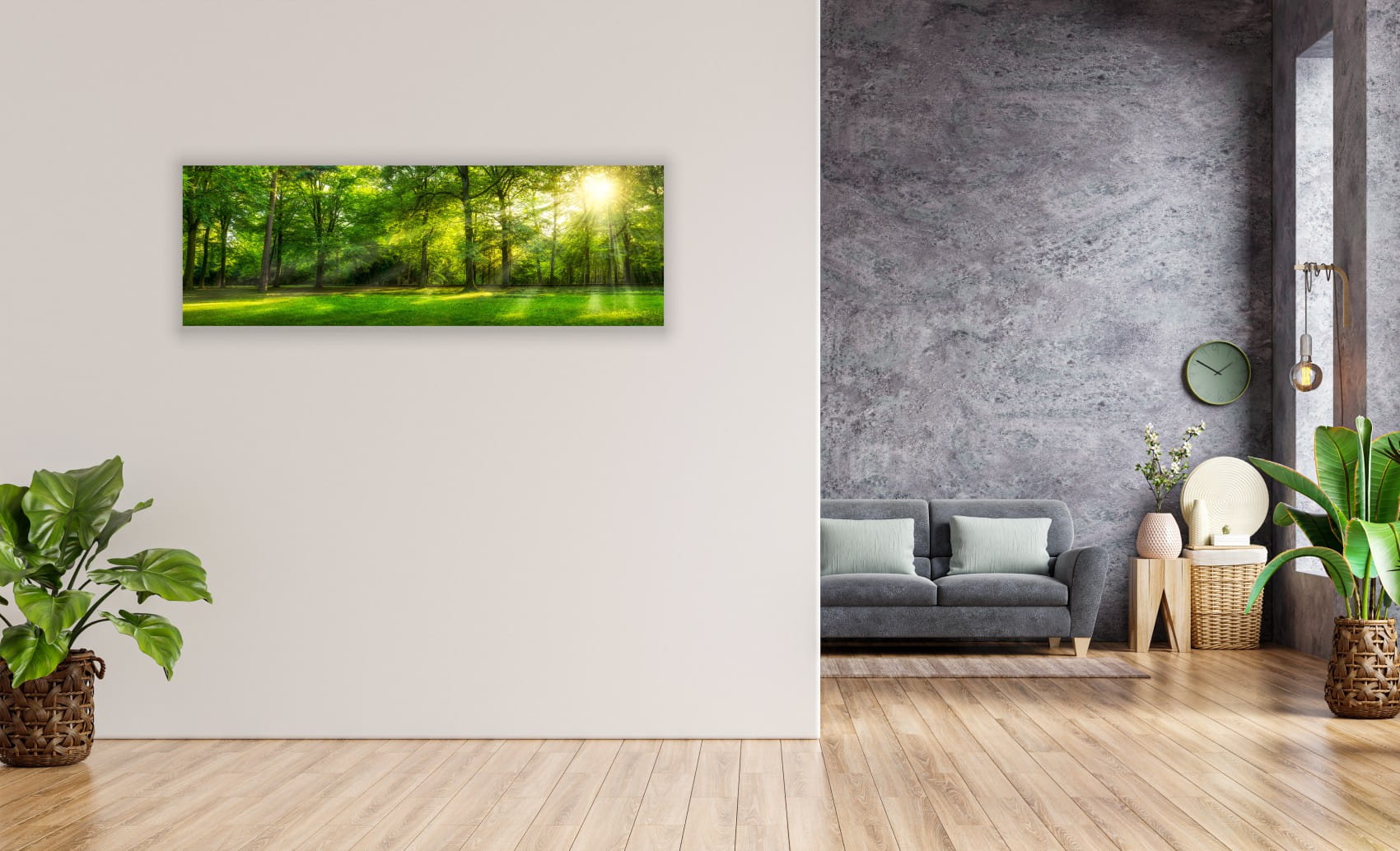 OBRAZ PANORAMICZNY dekoracyjny PANORAMA słoneczny las zieleń natura