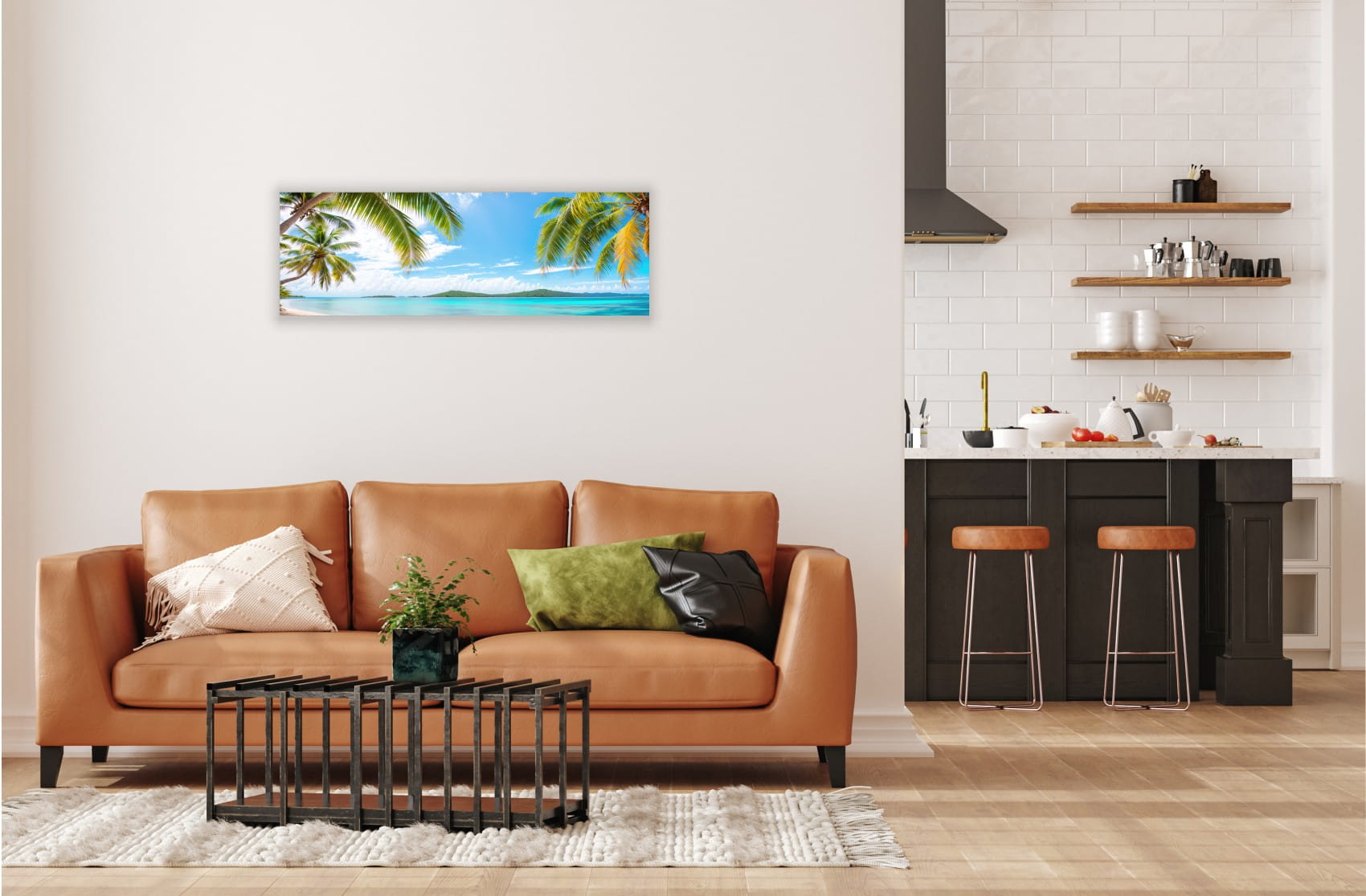 OBRAZ PANORAMICZNY dekoracyjny PANORAMA tropiki widok pod palmą