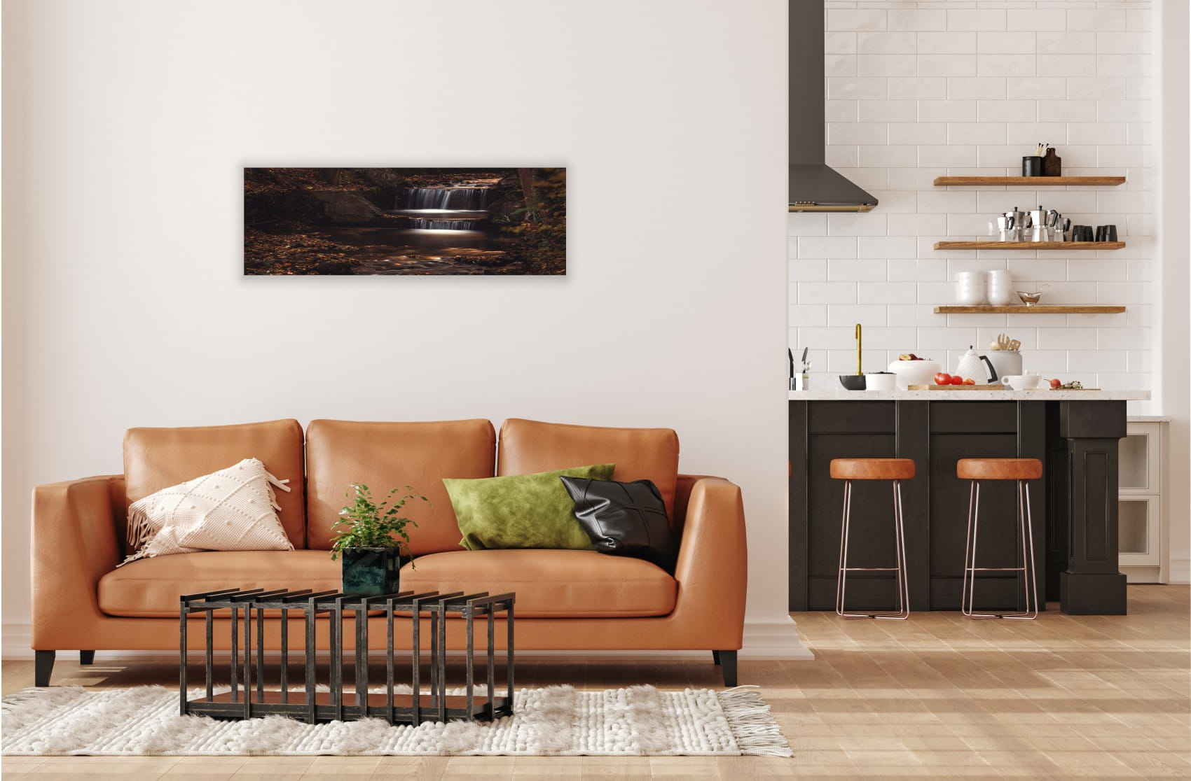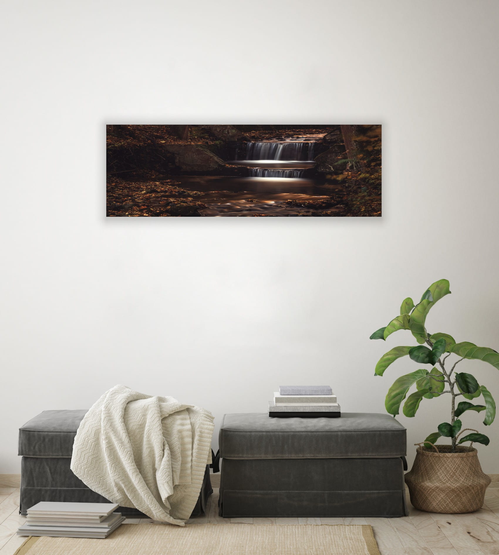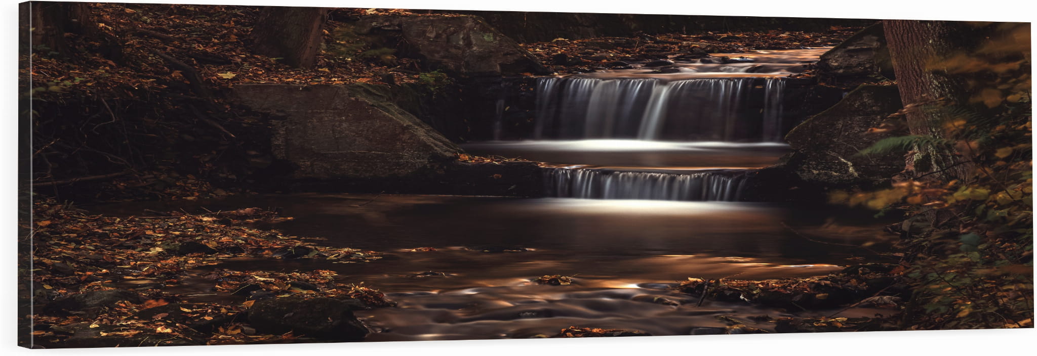 OBRAZ PANORAMICZNY dekoracyjny PANORAMA wodospad mrok las jesienią