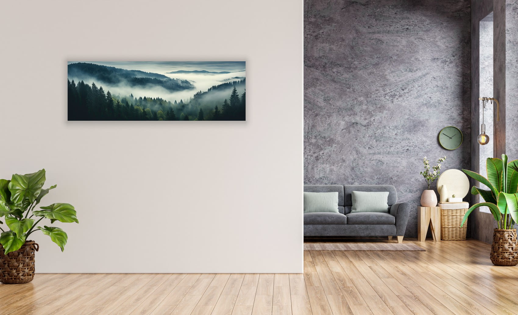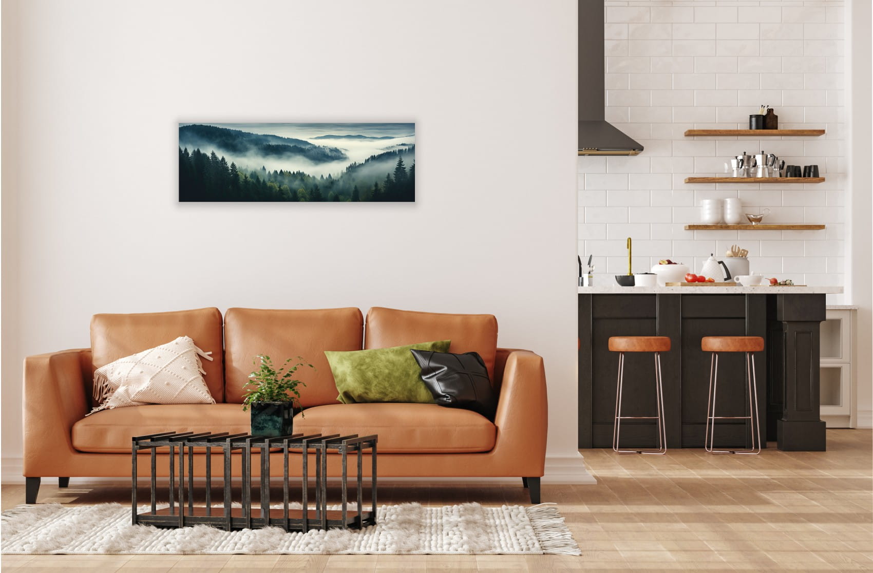 OBRAZ PANORAMICZNY dekoracyjny PANORAMA wzgórza mgła widok las