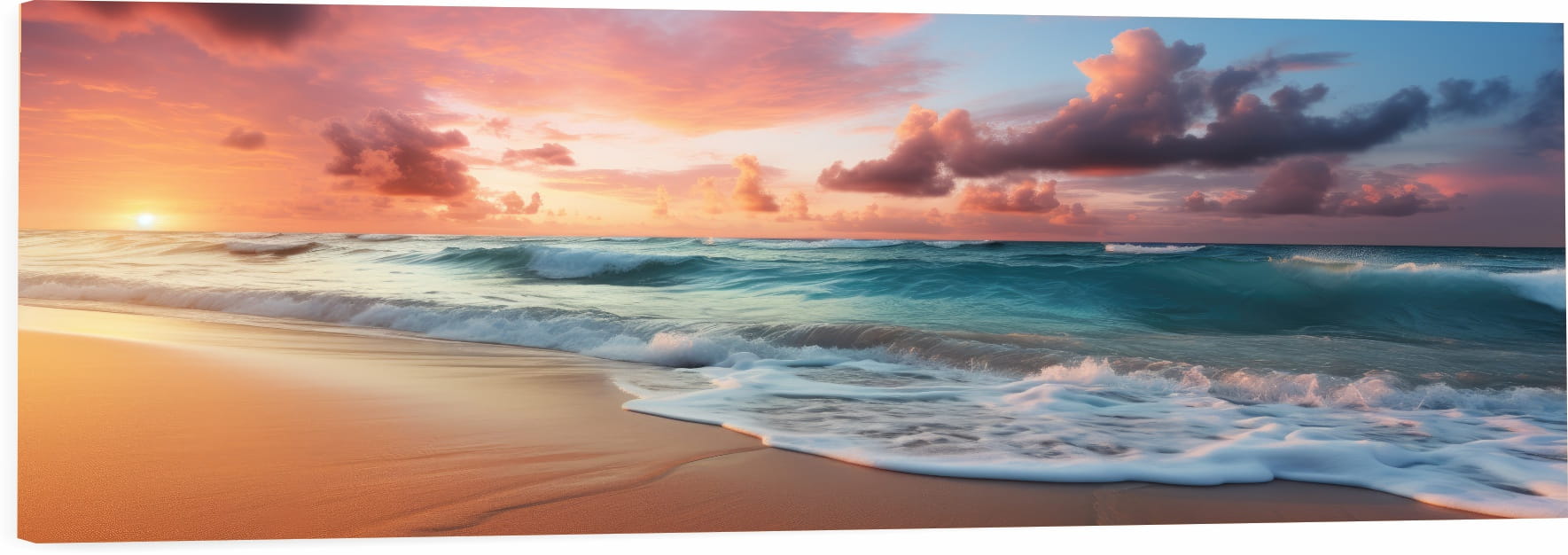OBRAZ PANORAMICZNY dekoracyjny PANORAMA zachód słońca morze fale