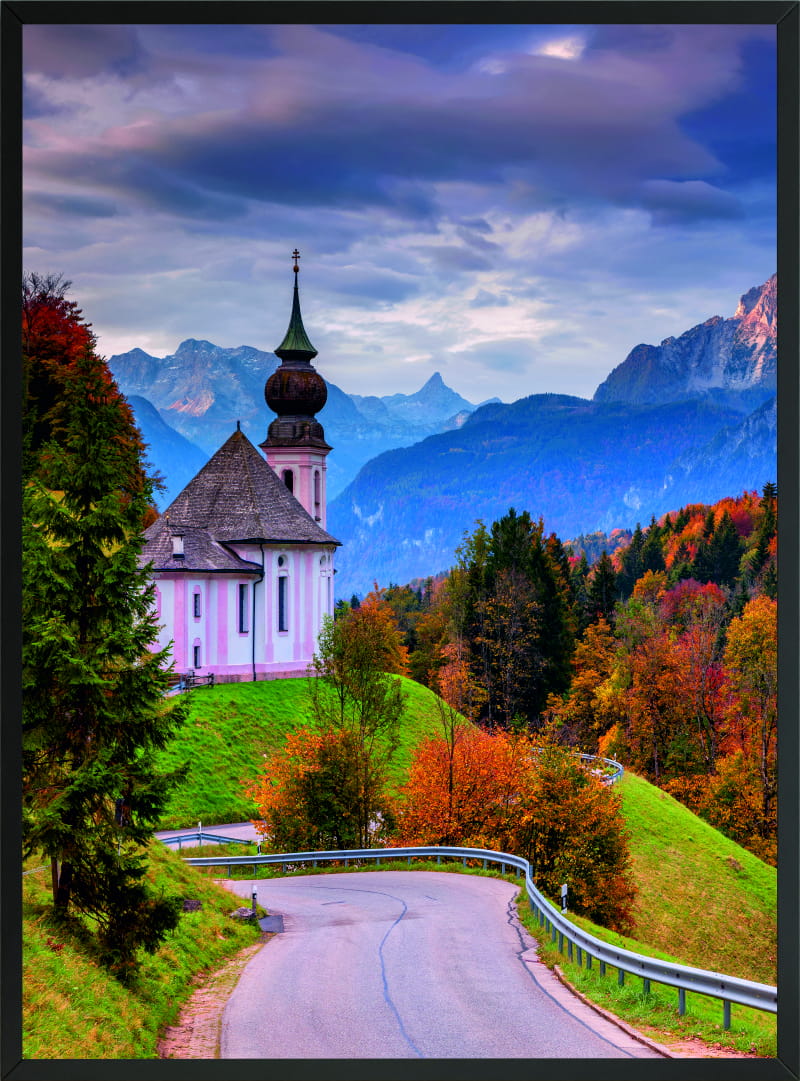 OBRAZ PLAKAT POSTER ALPY BAWARSKIE GÓRY DROGA KOŚCIÓŁ