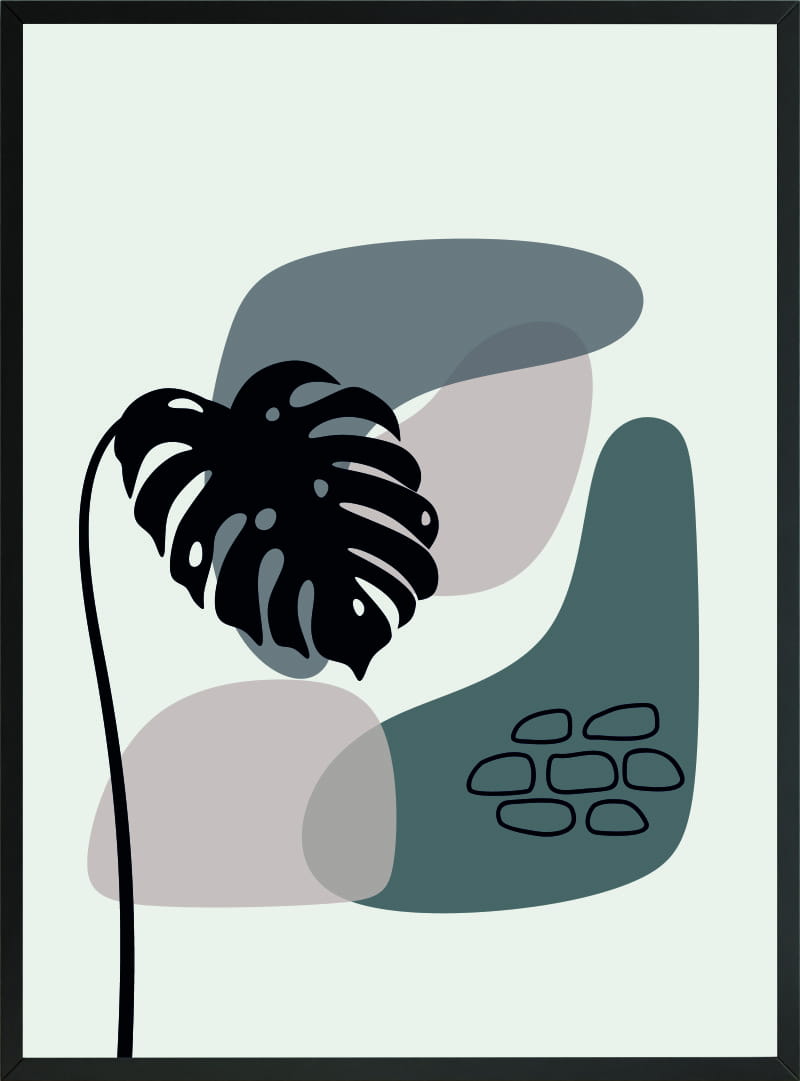 OBRAZ PLAKAT duży liść monstera black