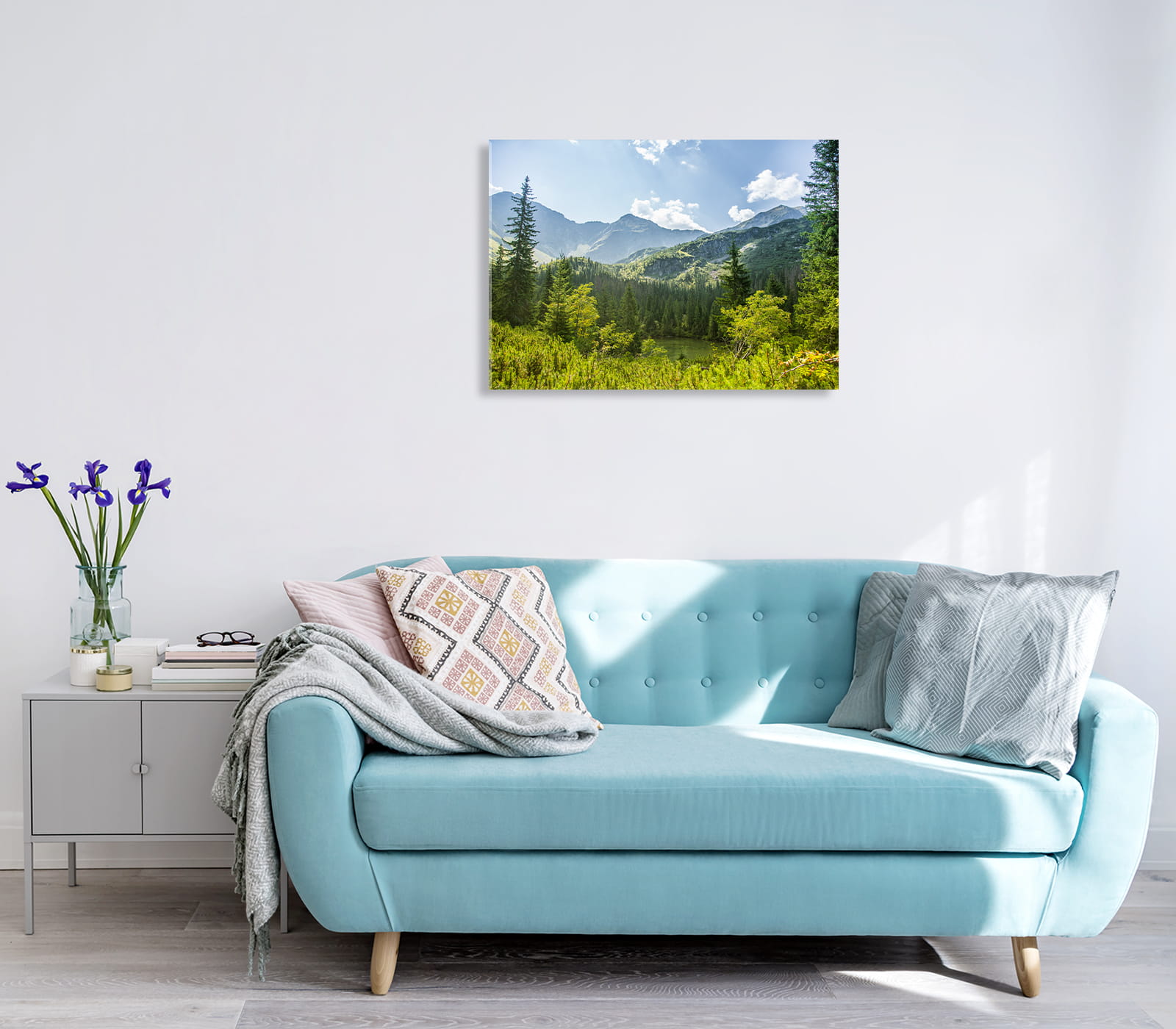 OBRAZ SZKLANY DO SALONU GÓRY LAS ZIELEŃ