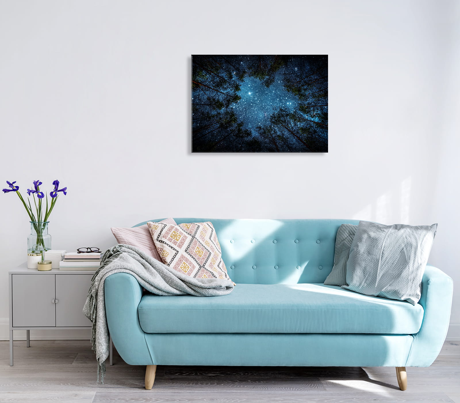 OBRAZ SZKLANY DO SALONU GWIEŹDZISTE NIEBO KORONY DRZEW
