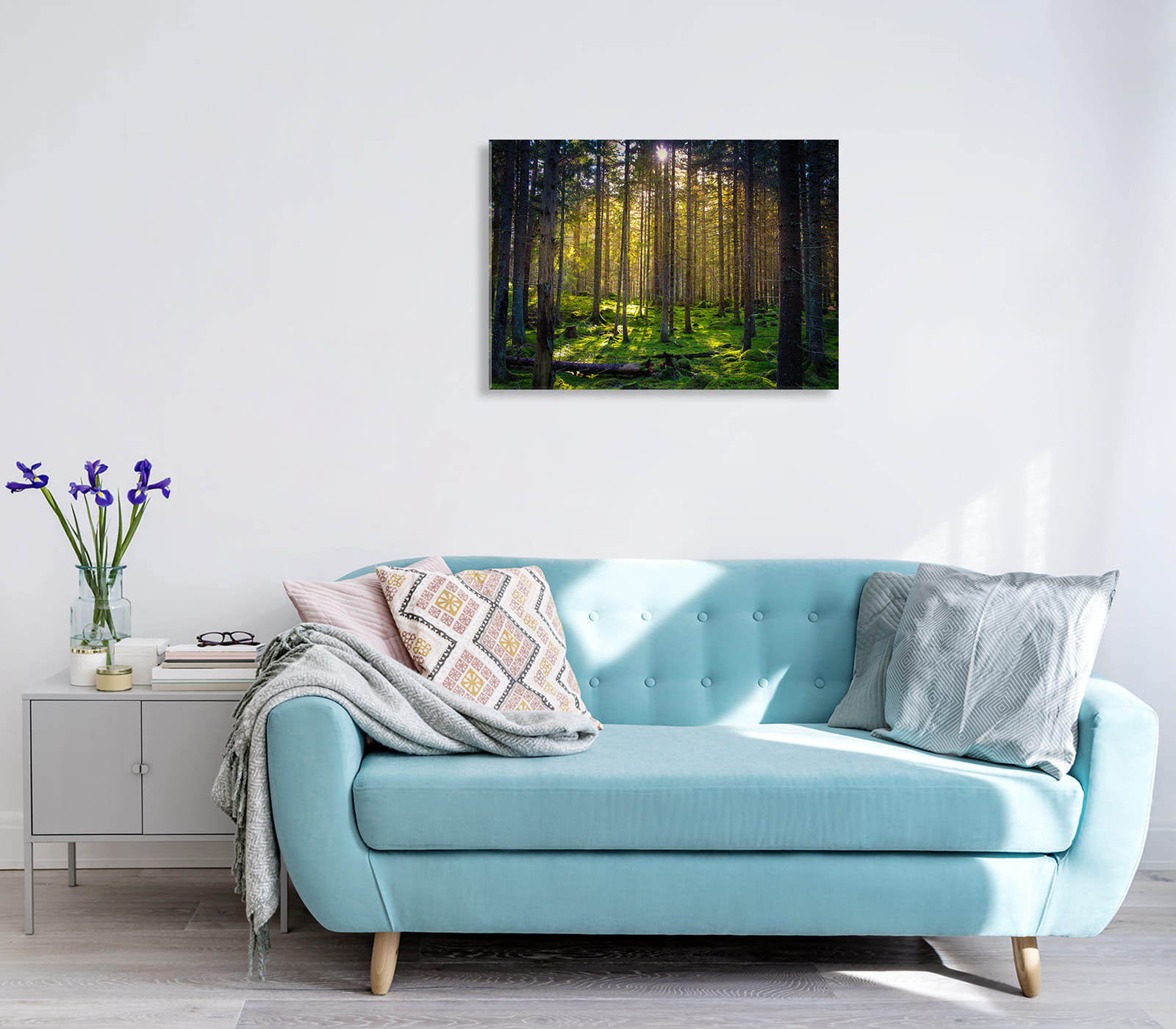 OBRAZ SZKLANY DO SALONU LAS SŁOŃCE NATURA