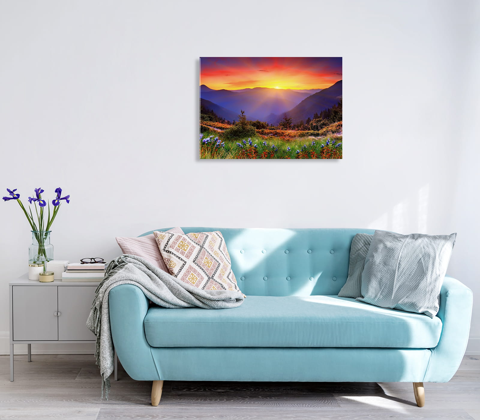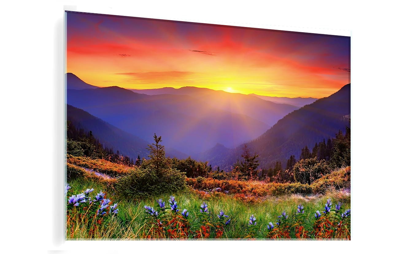OBRAZ SZKLANY DO SALONU ZACHÓD SŁOŃCA W GÓRACH