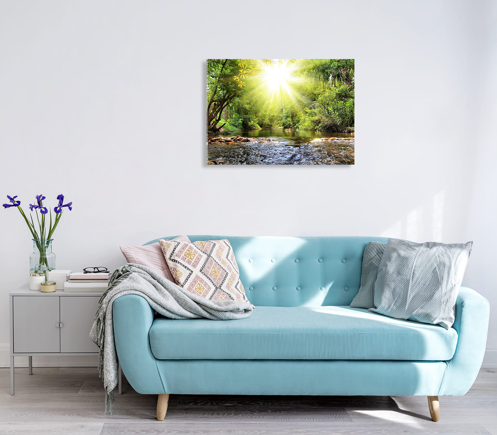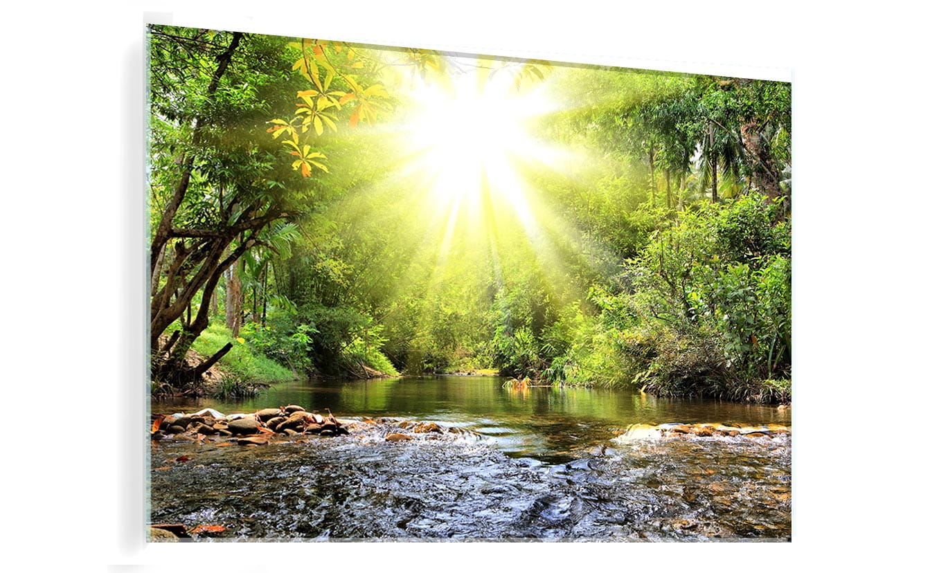 OBRAZ SZKLANY DO SALONU ZIELONY LAS RZEKA POTOK