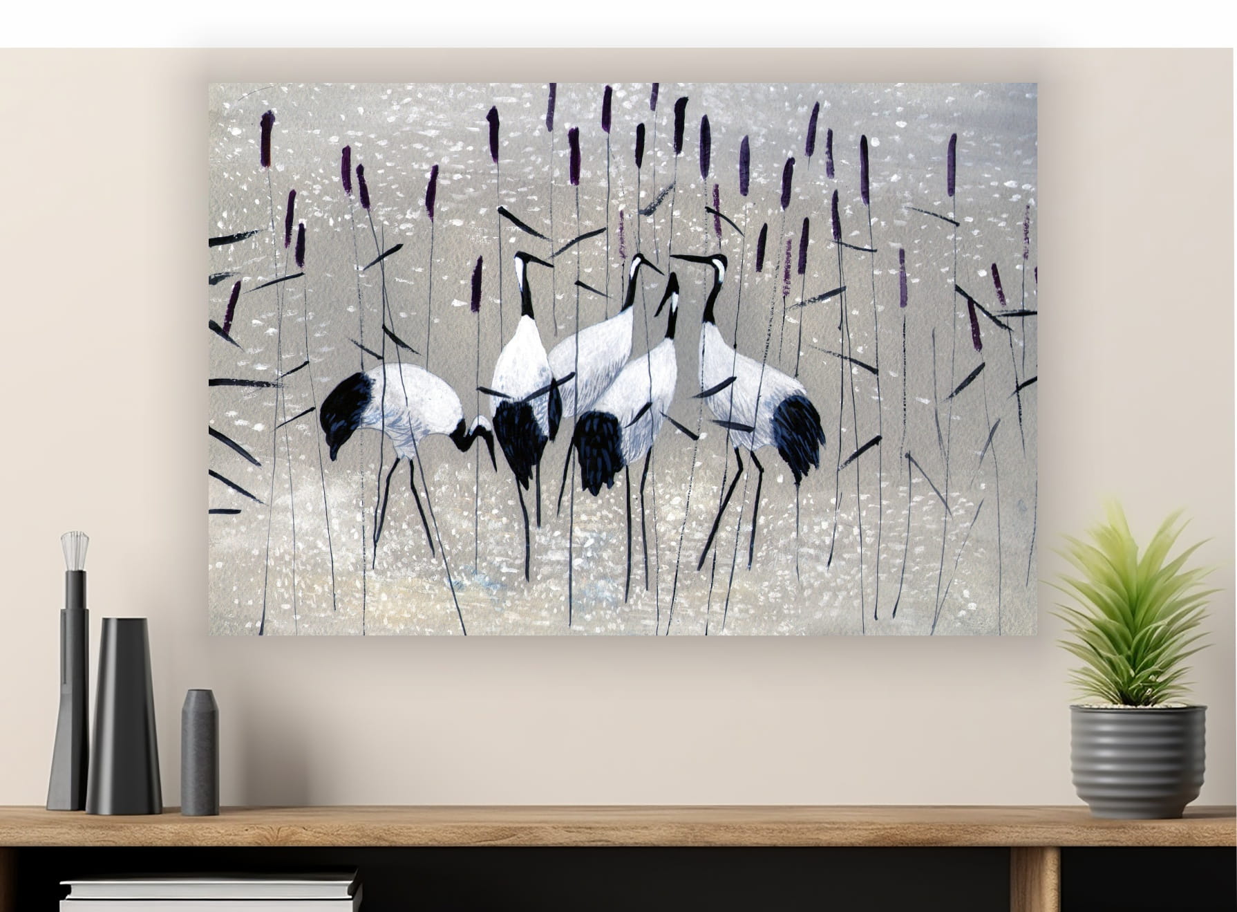 OBRAZ Żurawie wśród tataraku nowoczesny obraz na płótnie