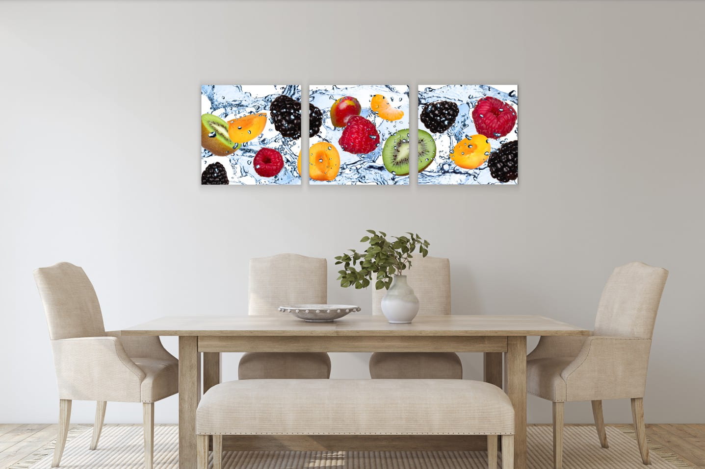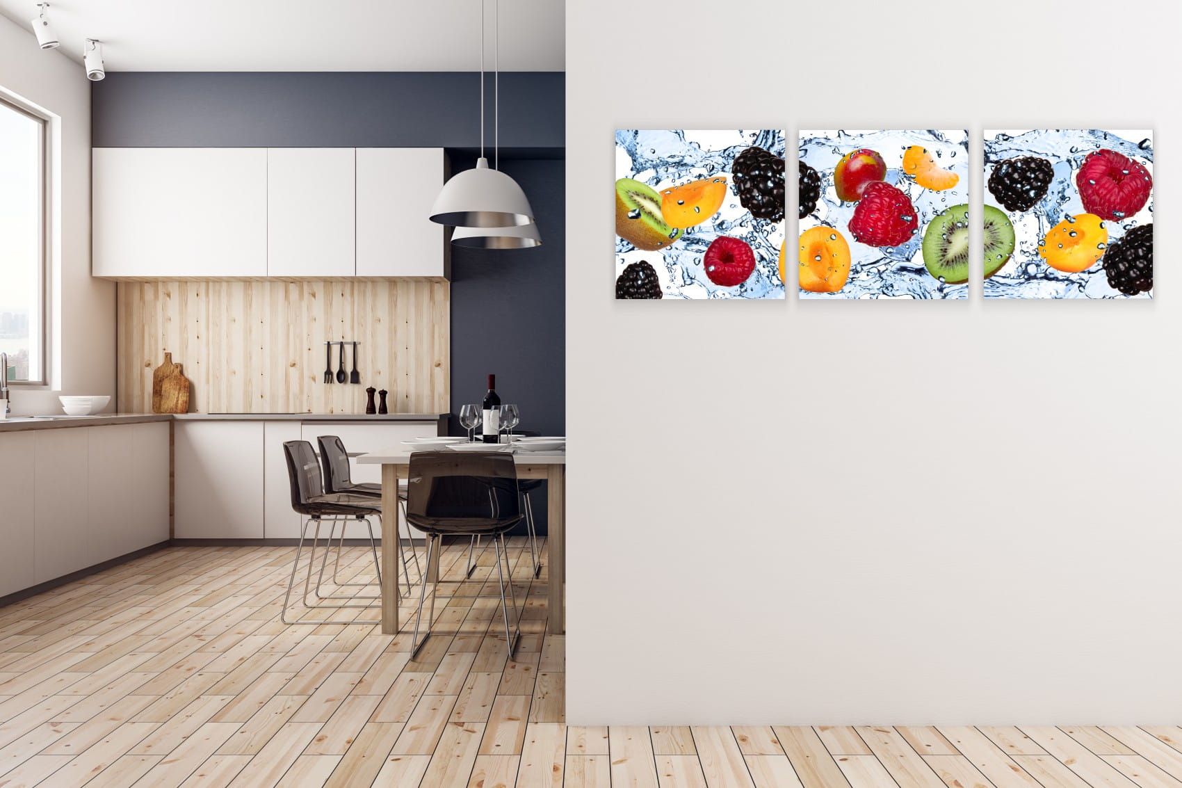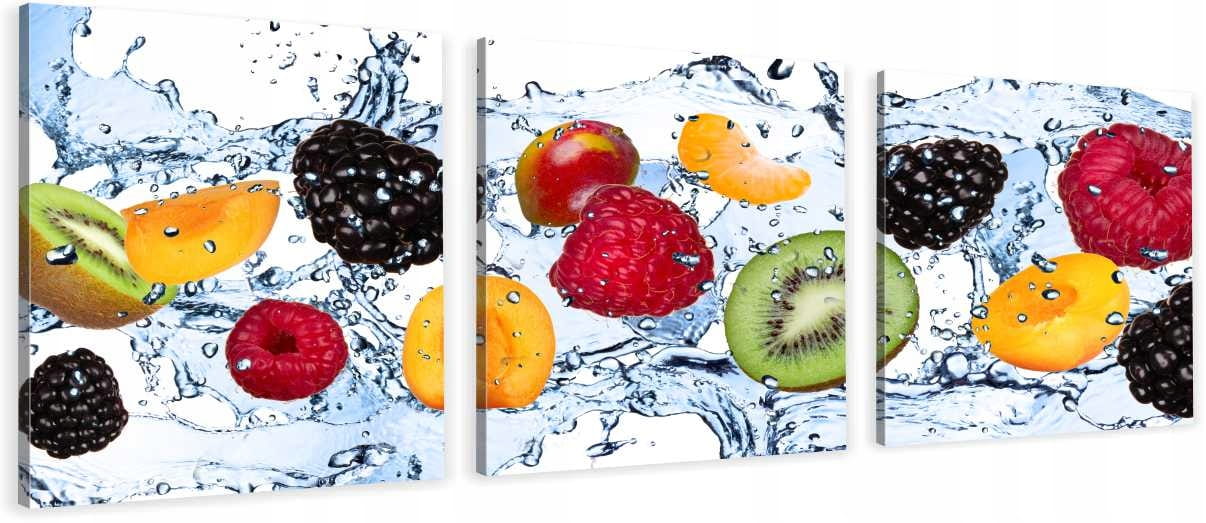 OBRAZ do kuchni OWOCE W WODZIE MALINY KIWI