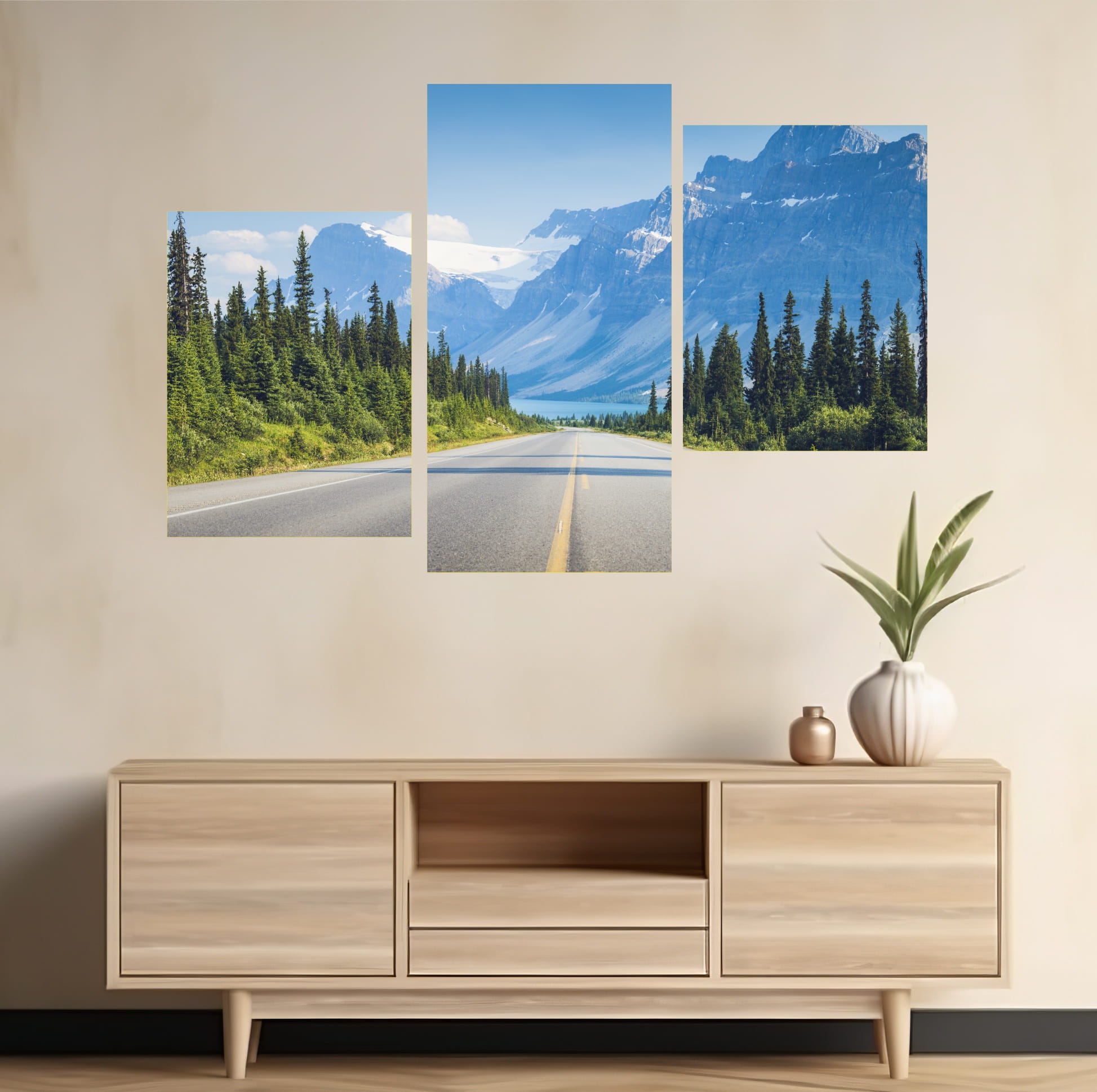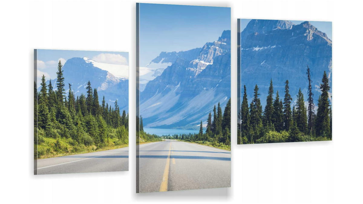 OBRAZ góry droga las Kanada TRYPTYK 3 CZĘŚCIOWY