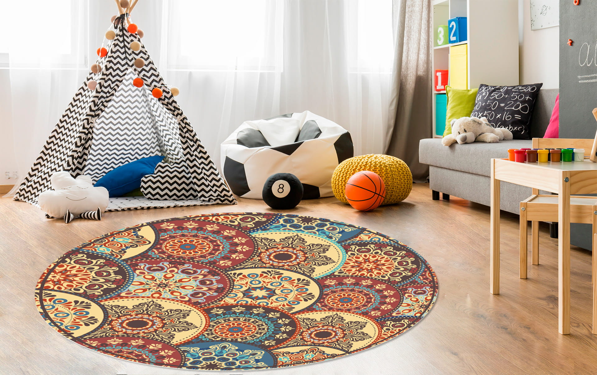 OCHRONNA MATA OKRĄGŁA POD FOTEL HISZPAŃSKA MANDALA