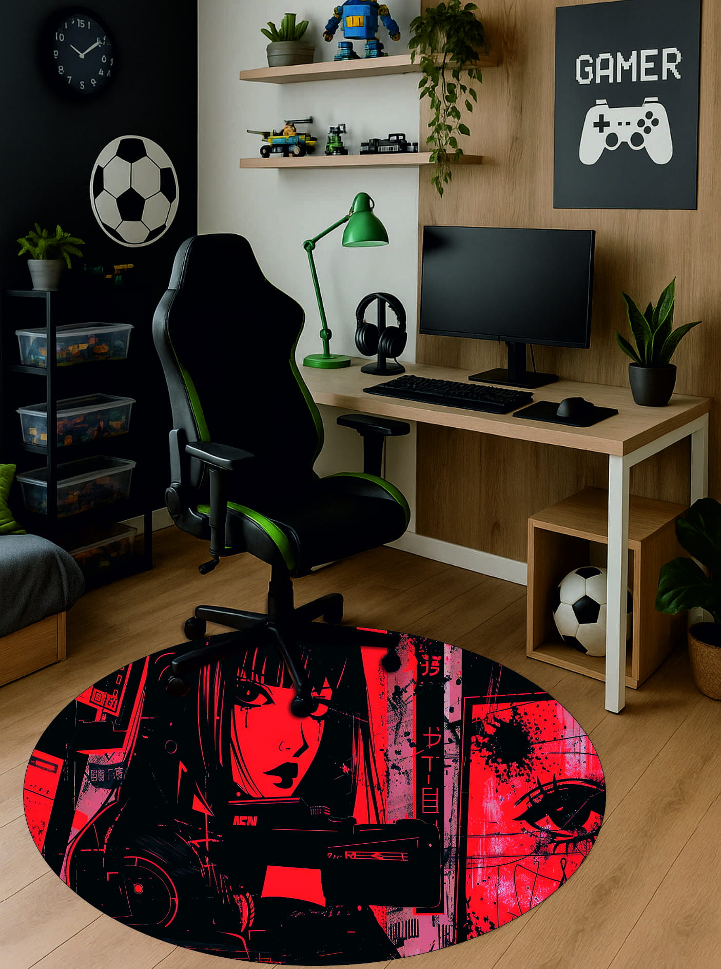 OCHRONNA MATA POD FOTEL OKRĄGŁA KOBIETA CZERWONE ŚWIATŁO