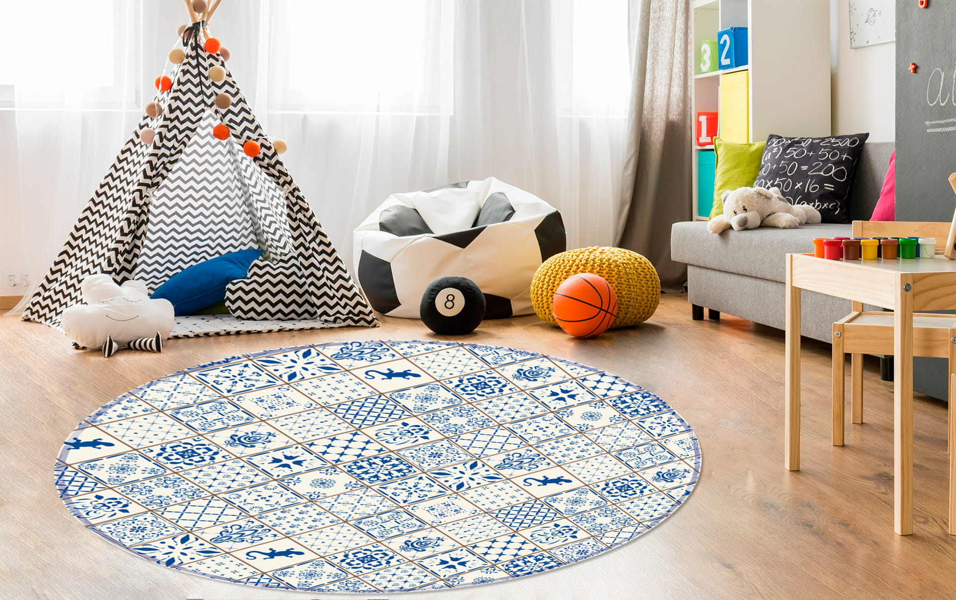 OCHRONNA PODKŁADKA OKRĄGŁA MATA NIEBIESKA MOZAIKA PATCHWORK