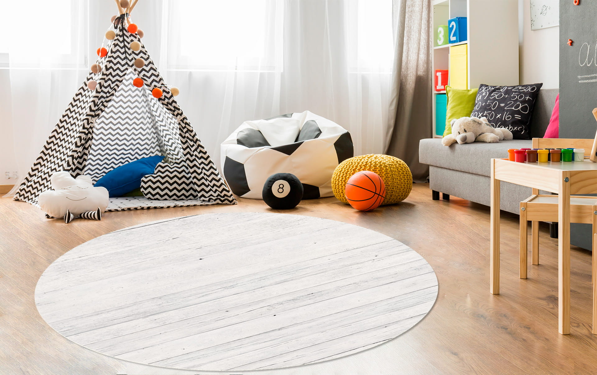 OCHRONNA PODKŁADKA OKRĄGŁA MATA PODŁOGOWA BIAŁE DESKI