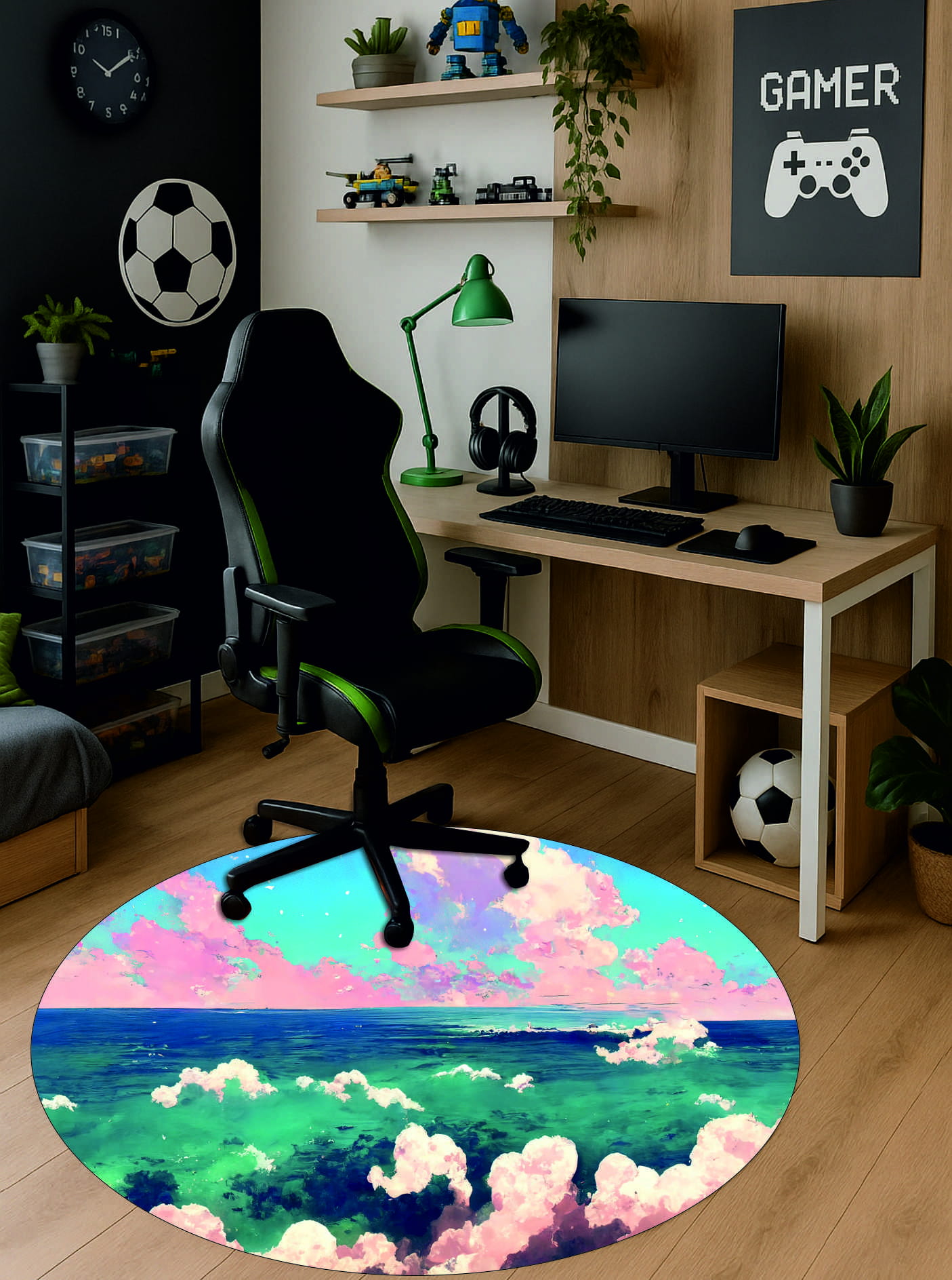 OCHRONNA PODKŁADKA POD FOTEL OKRĄGŁA WYBLAKŁE FALE OCEANU