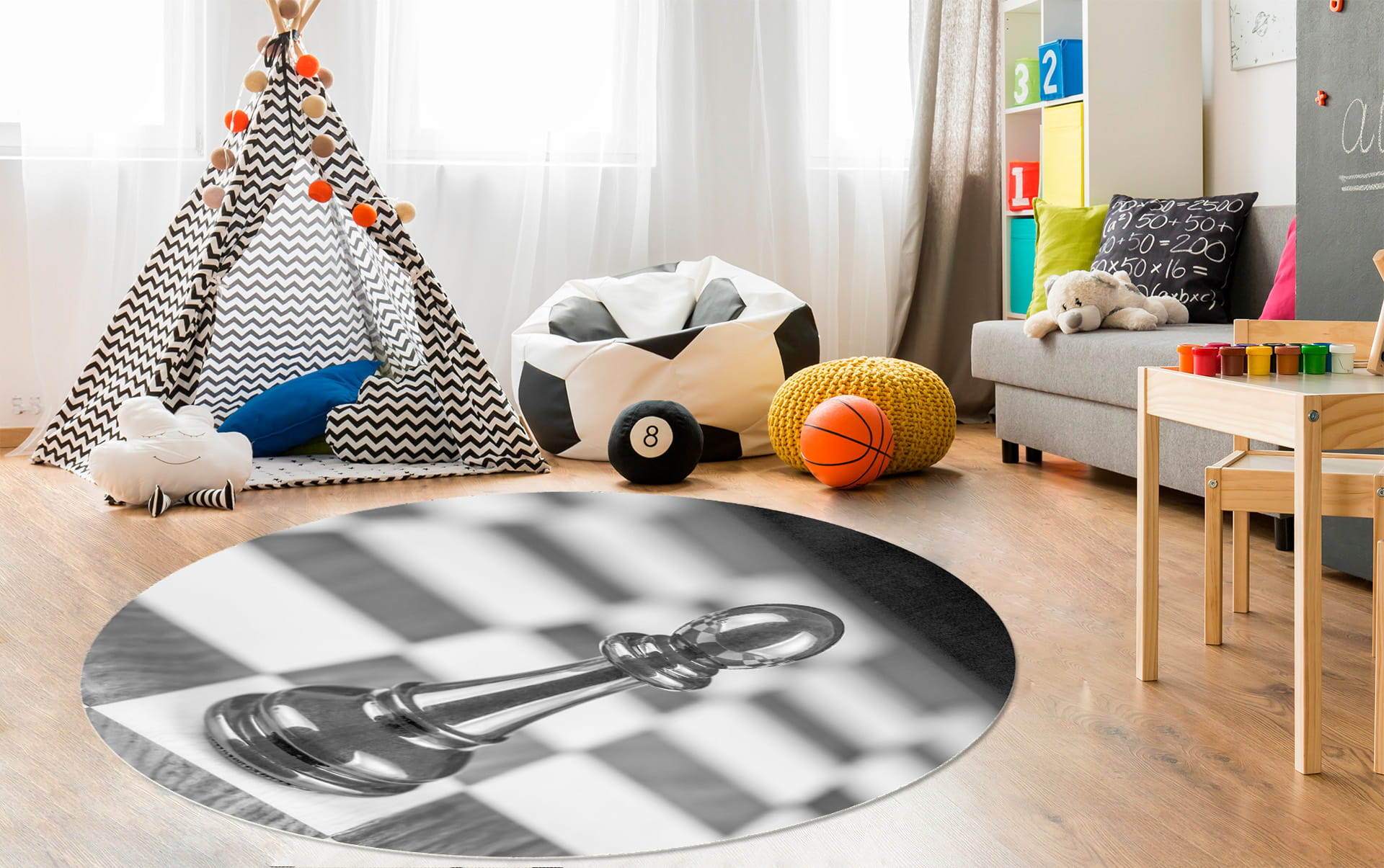 OKRĄGŁA MATA POD FOTEL OCHRONNA SZACHOWNICA SZACHY