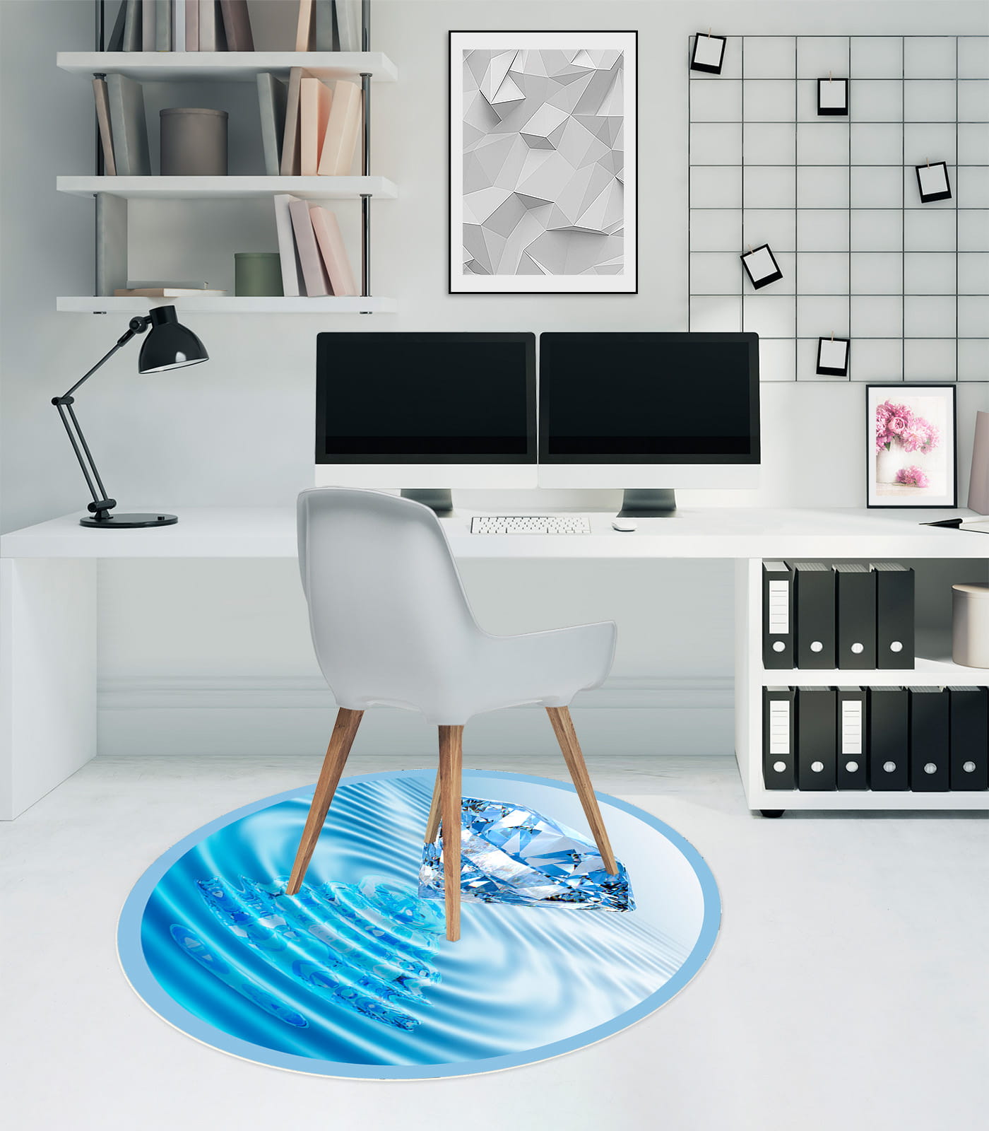 OKRĄGŁA MATA PODKŁADKA POD FOTEL DIAMENT WODA