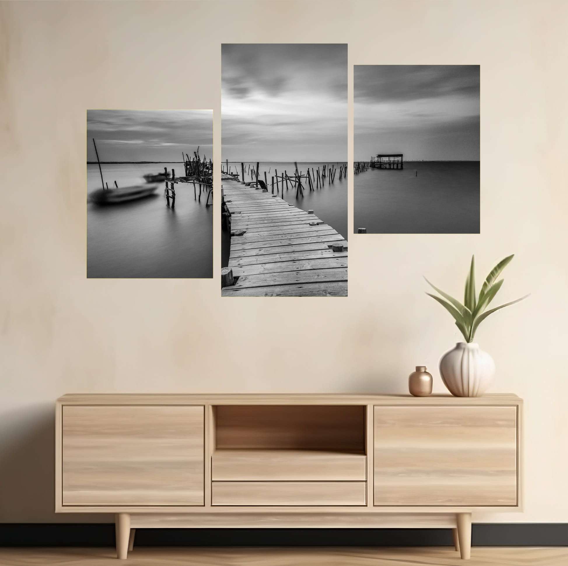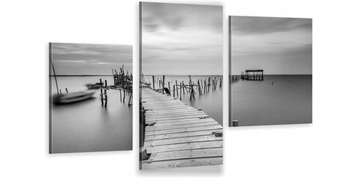 Obraz 3-częściowy Pomost JEZIORO Krajobraz CZARNO BIAŁY