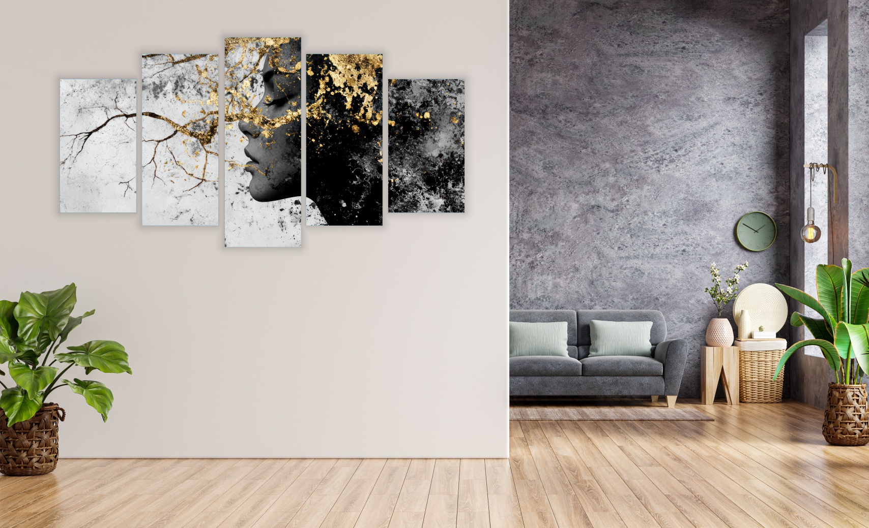 Obraz 5 CZĘŚCIOWY KOBIETA W ZŁOCIE GLAMOUR ABSTRAKCJA do salonu sypialni