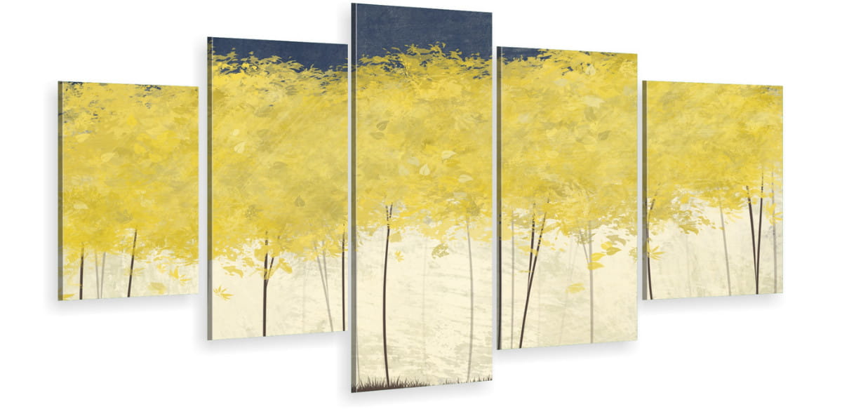 Obraz 5 części na płótnie tryptyk ABSTRAKCJA DRZEWA ZŁOTE LIŚCIE
