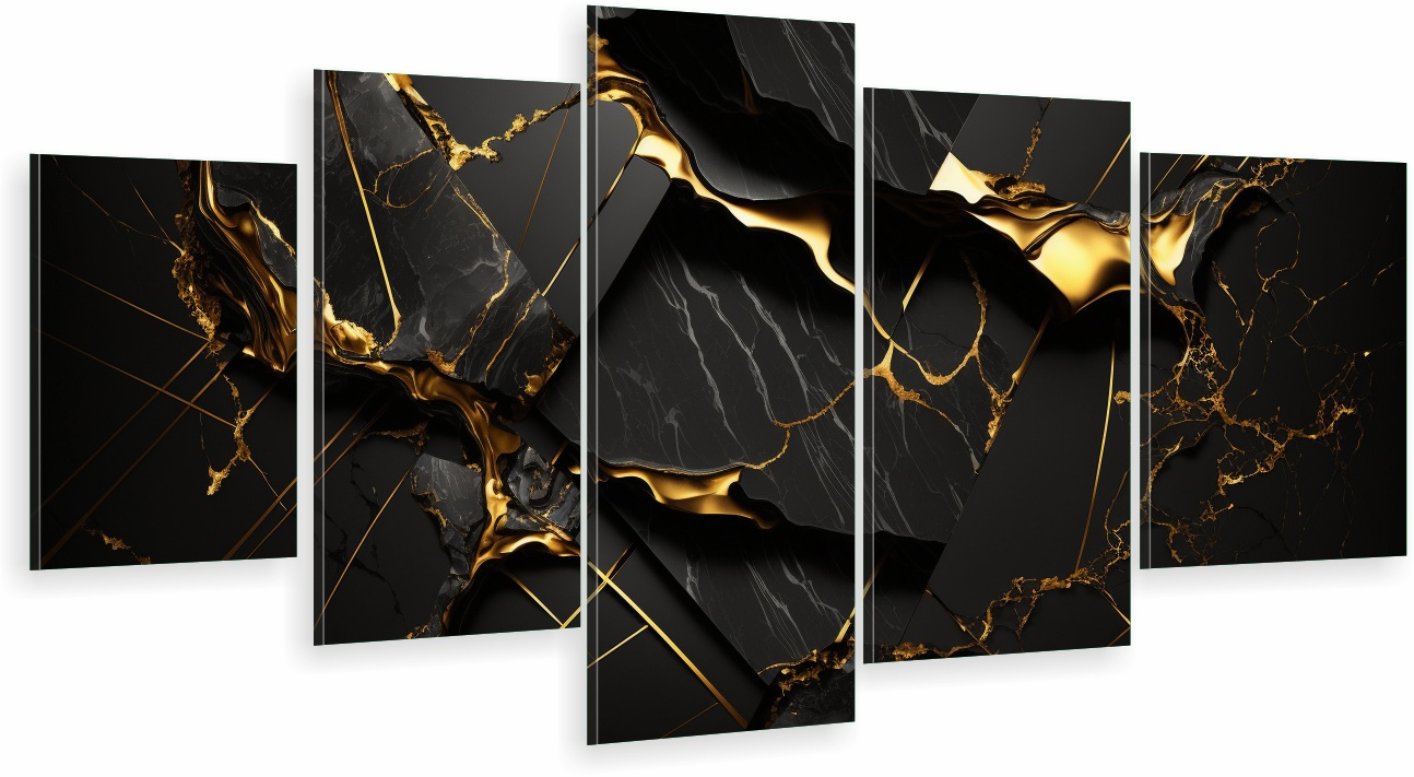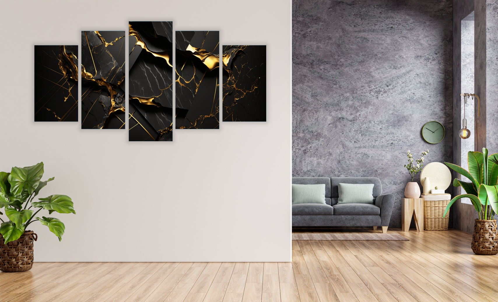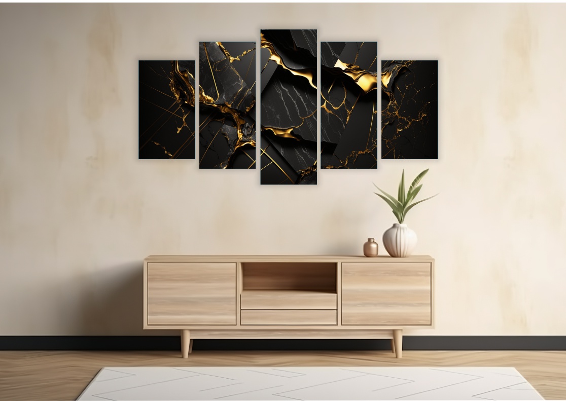 Obraz 5 części tryptyk NOWOCZESNY MARMUR CZARNO-ZŁOTY do salonu sypialni