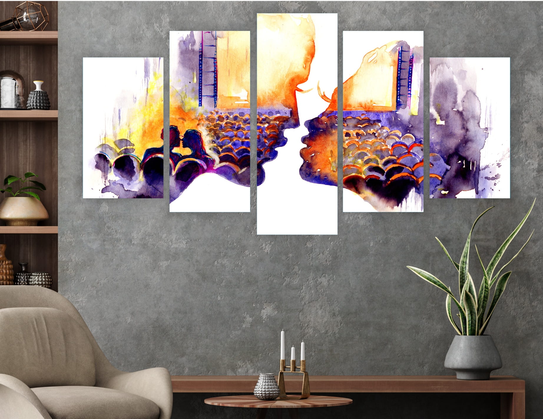 Obraz 5 części tryptyk abstrakcja pocałunek para