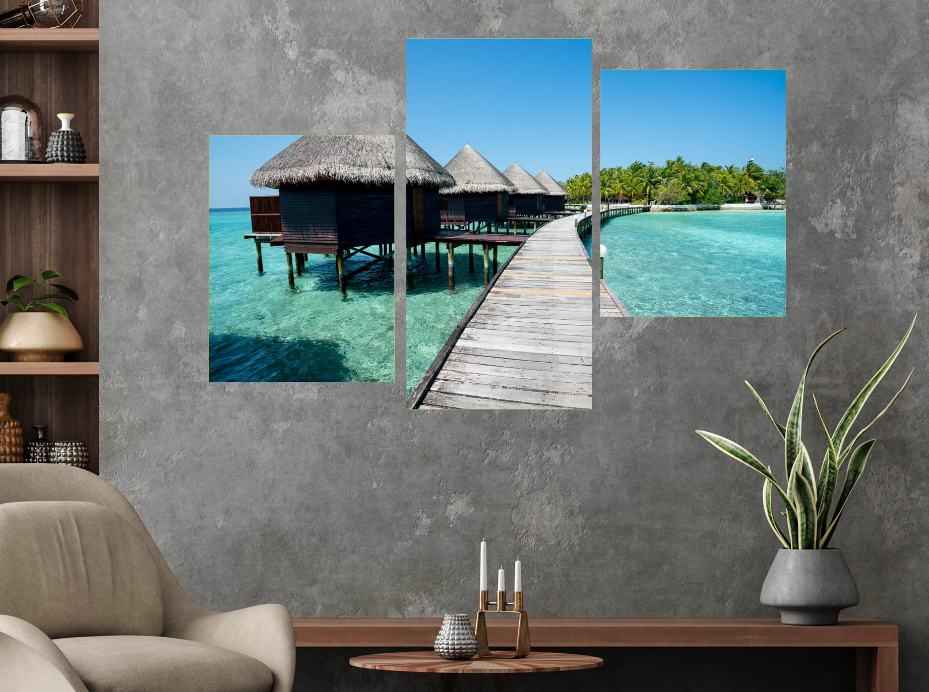 Obraz BALI DOMKI OCEAN MOST tryptyk 3 częściowy