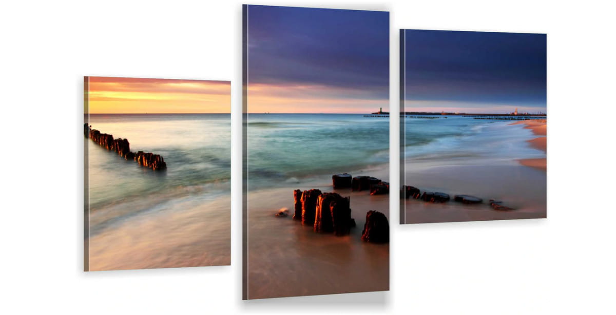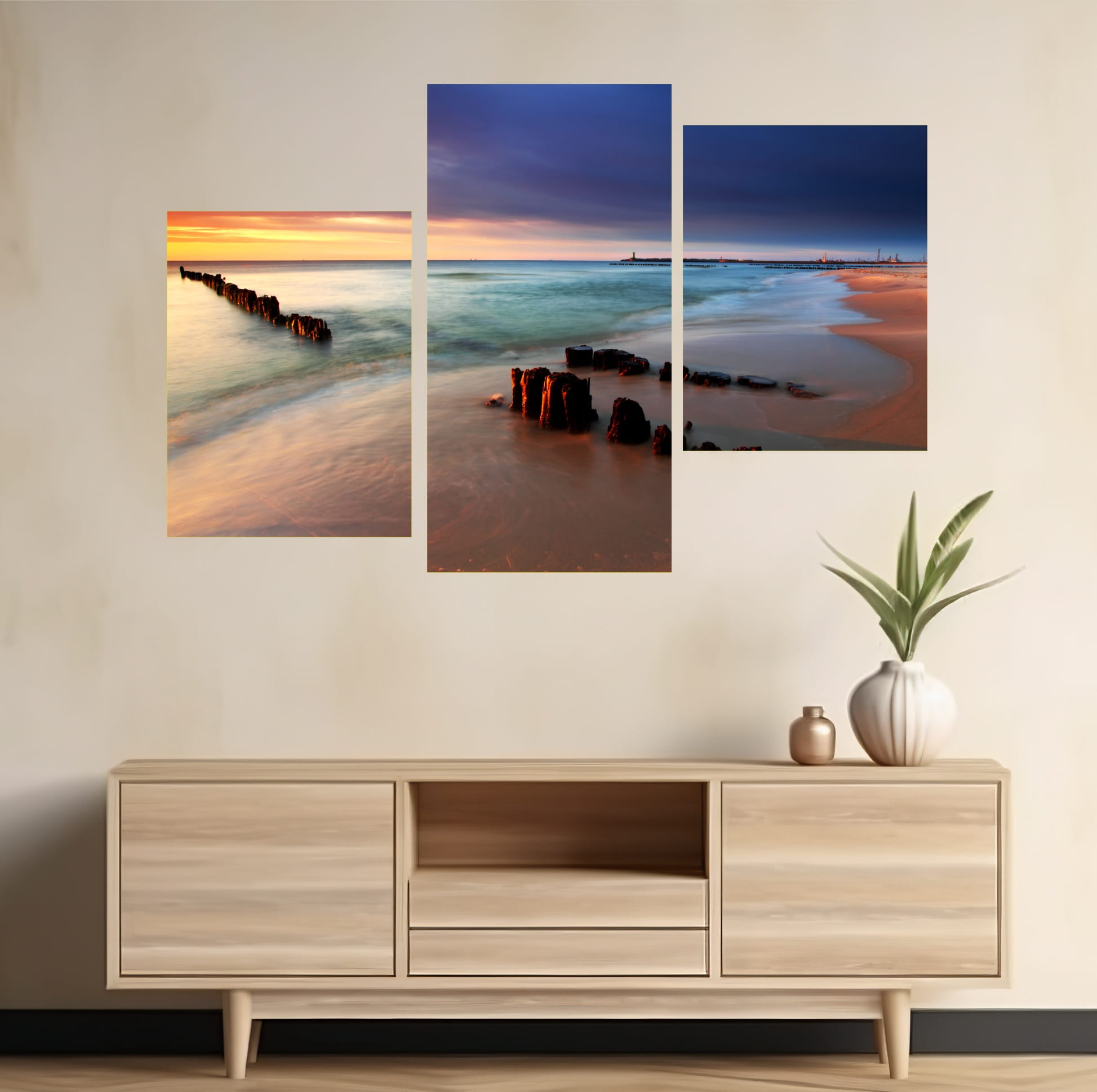 Obraz BAŁTYK PLAŻA MORZE ZACHÓD tryptyk do salonu canvas
