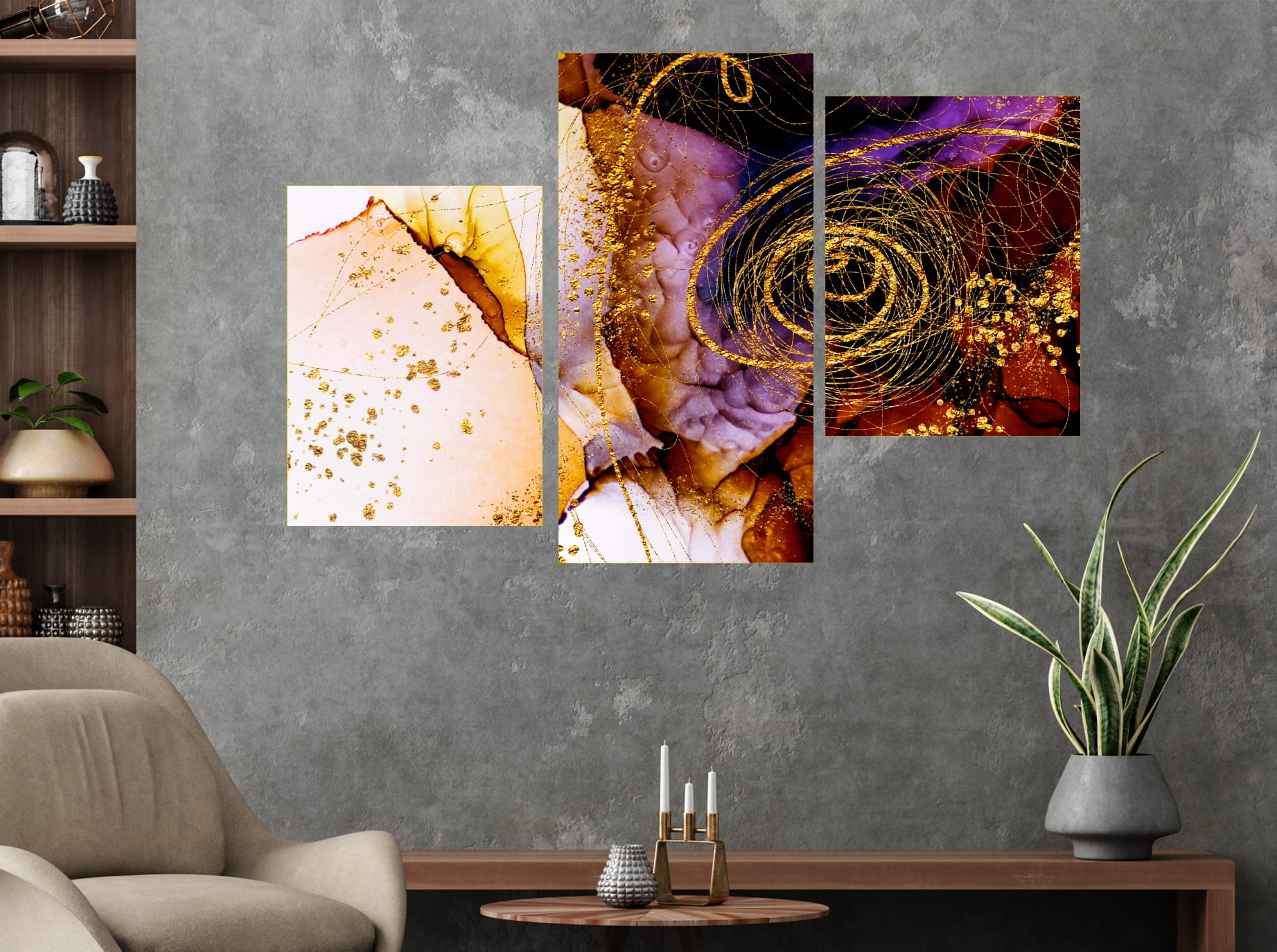 Obraz DO SALONU marmur kamień pozłacany
