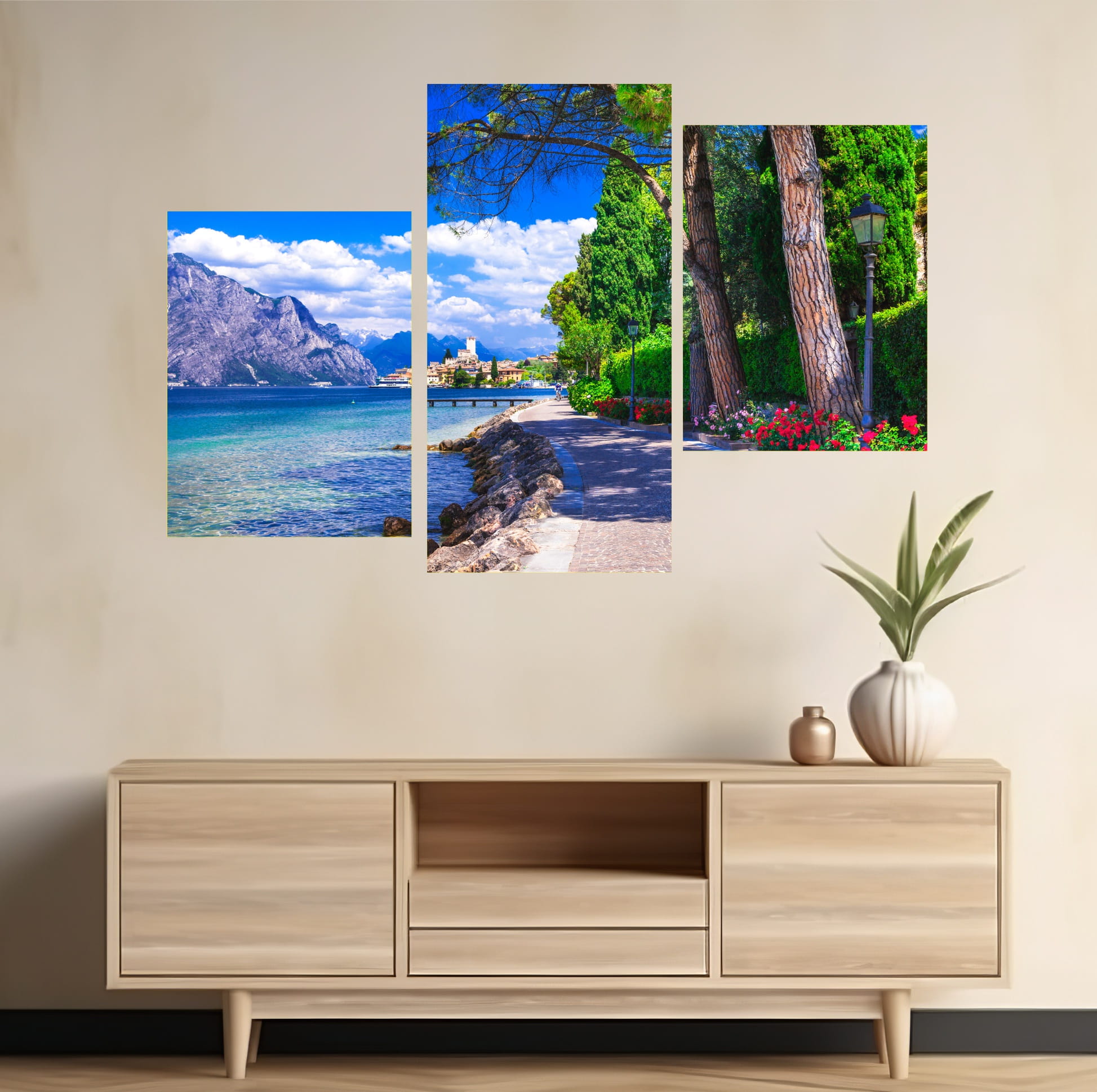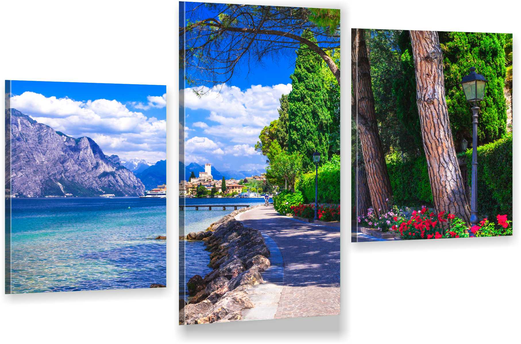 Obraz JEZIORO WŁOCNY tryptyk do salonu KWIATY ITALIA