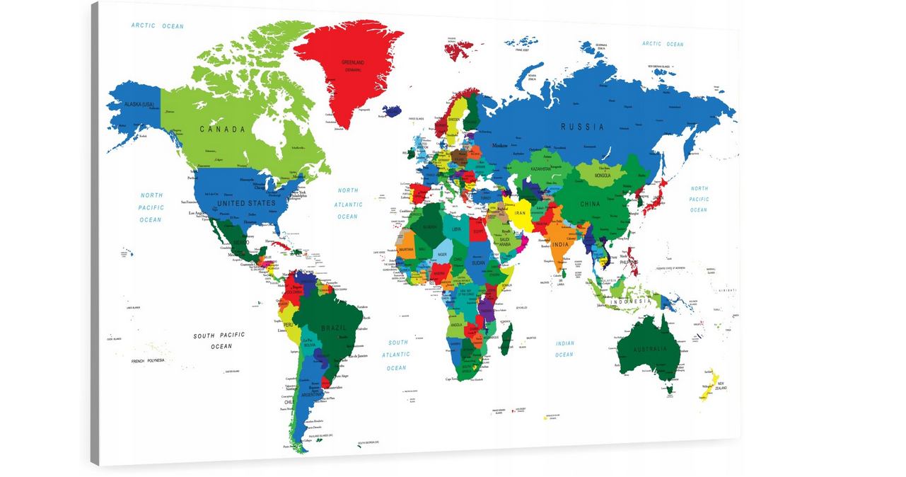 Obraz KOLOROWA MAPA ŚWIAT na płótnie canvas