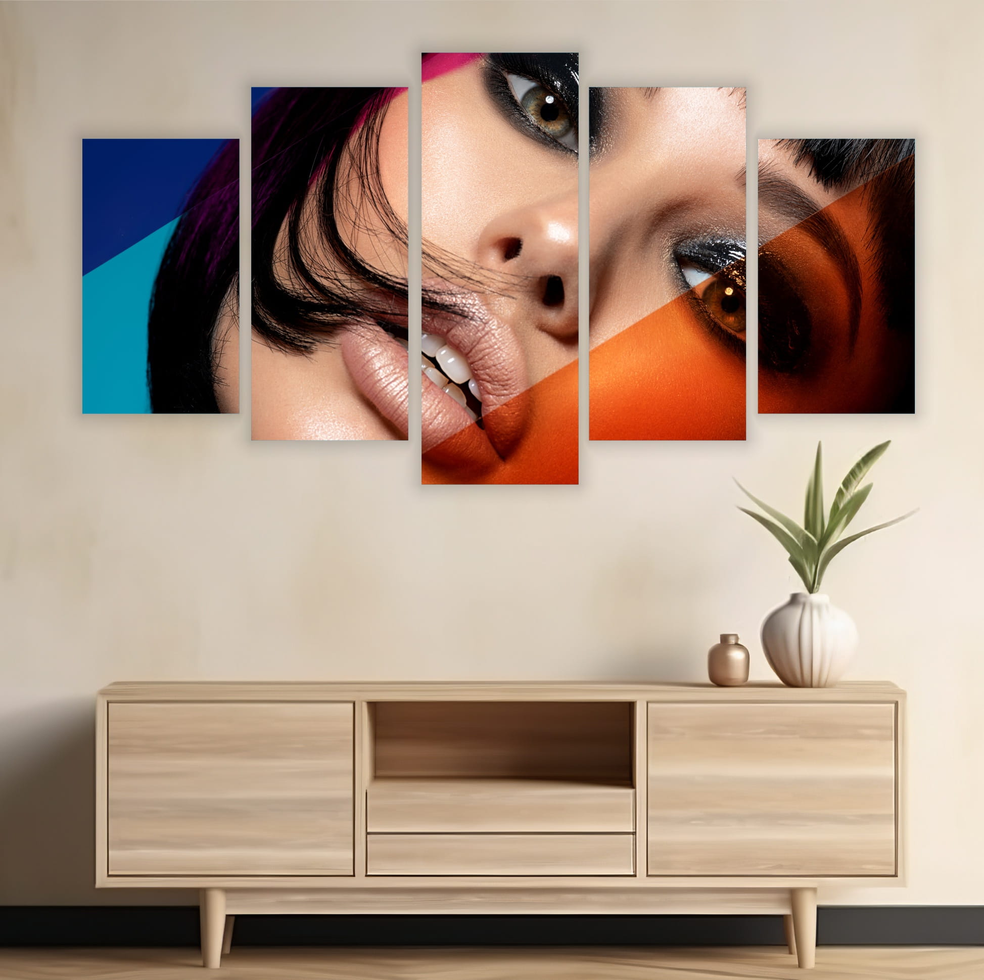 Obraz Kobieta glamour twarz kobiety TRYPTYK NA PŁÓTNIE
