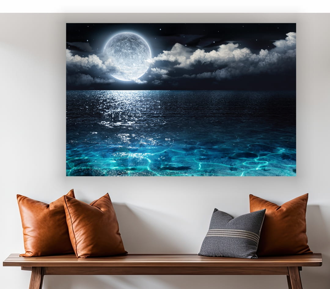 Obraz Księżyc gwiazdy morze nocą na płótnie do salonu
