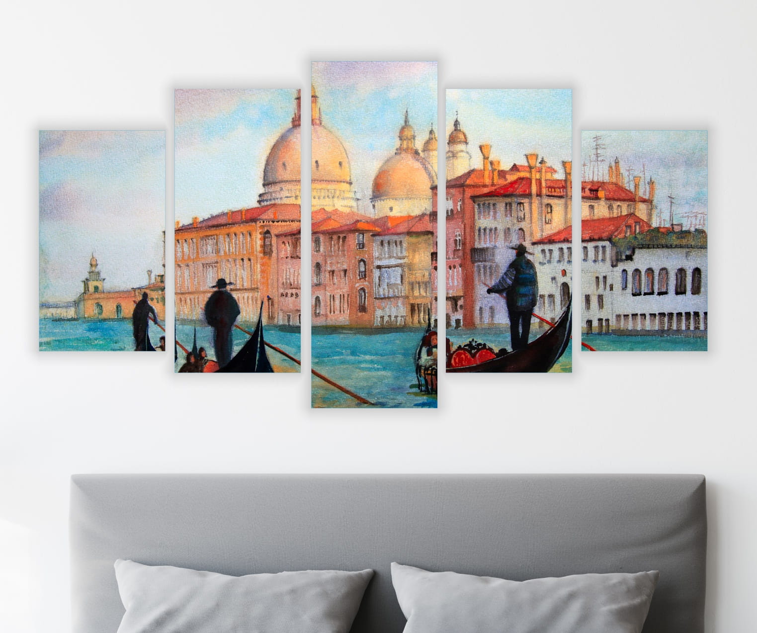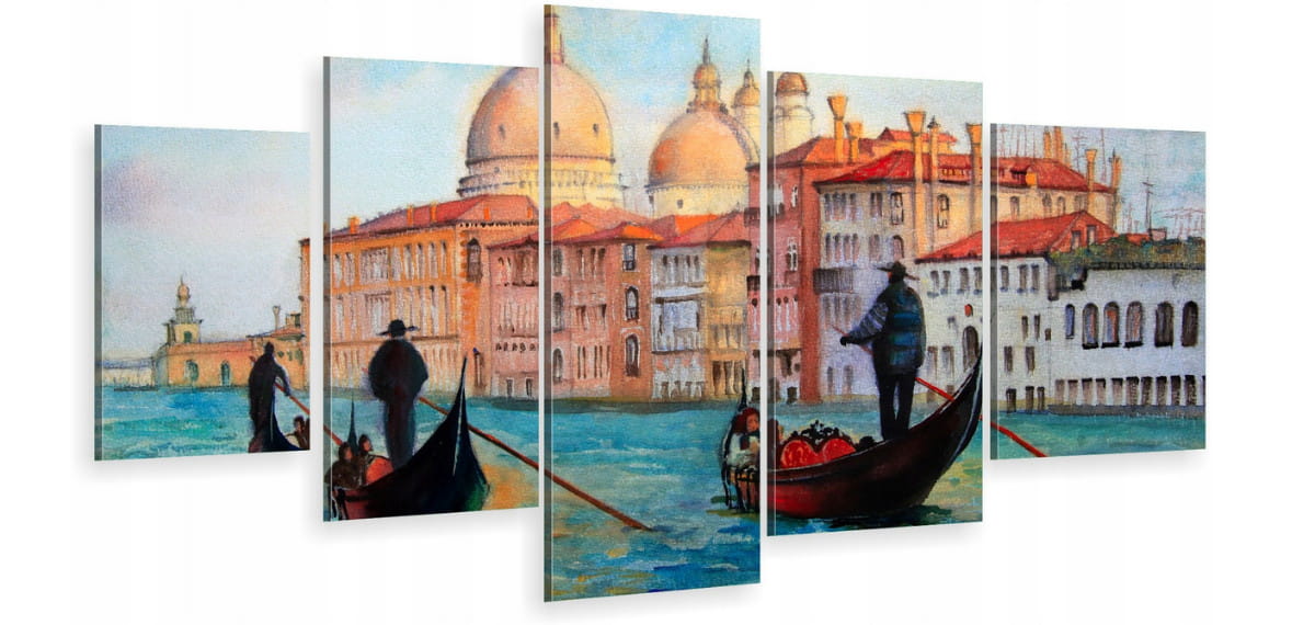 Obraz Łodzie Woda Włochy Wenecja MALUNEK 3D TRYPTYK NA PŁÓTNIE