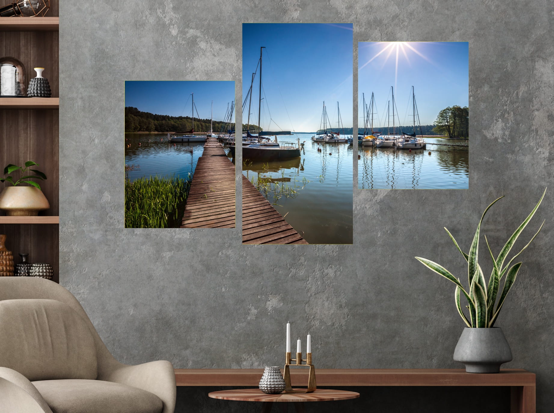 Obraz MAZURY PRZYSTAŃ wakacyjny tryptyk 3 częściowy