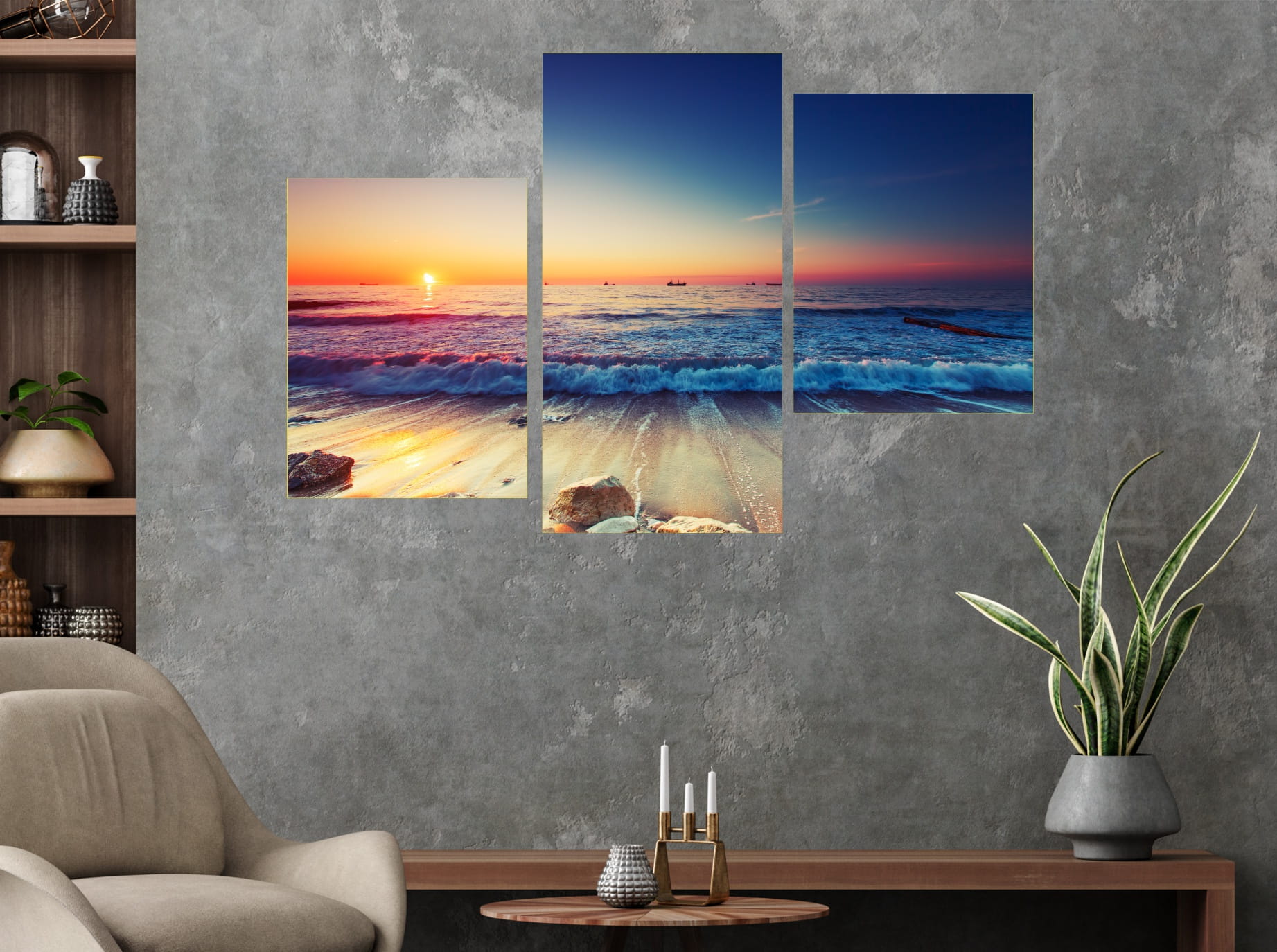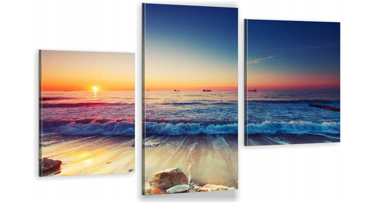 Obraz MORZE ZACHÓD SŁOŃCA NA PLAŻY tryptyk 3 częściowy