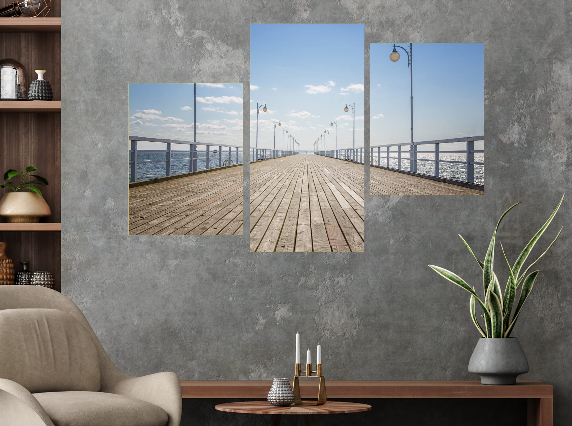 Obraz Morze Bałtyckie molo w Sopocie tryptyk na płótnie