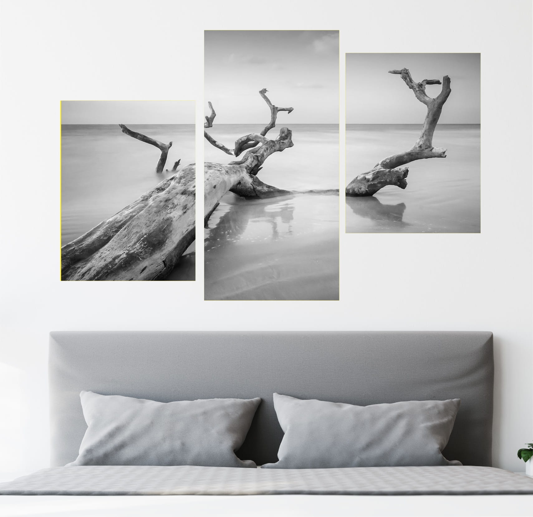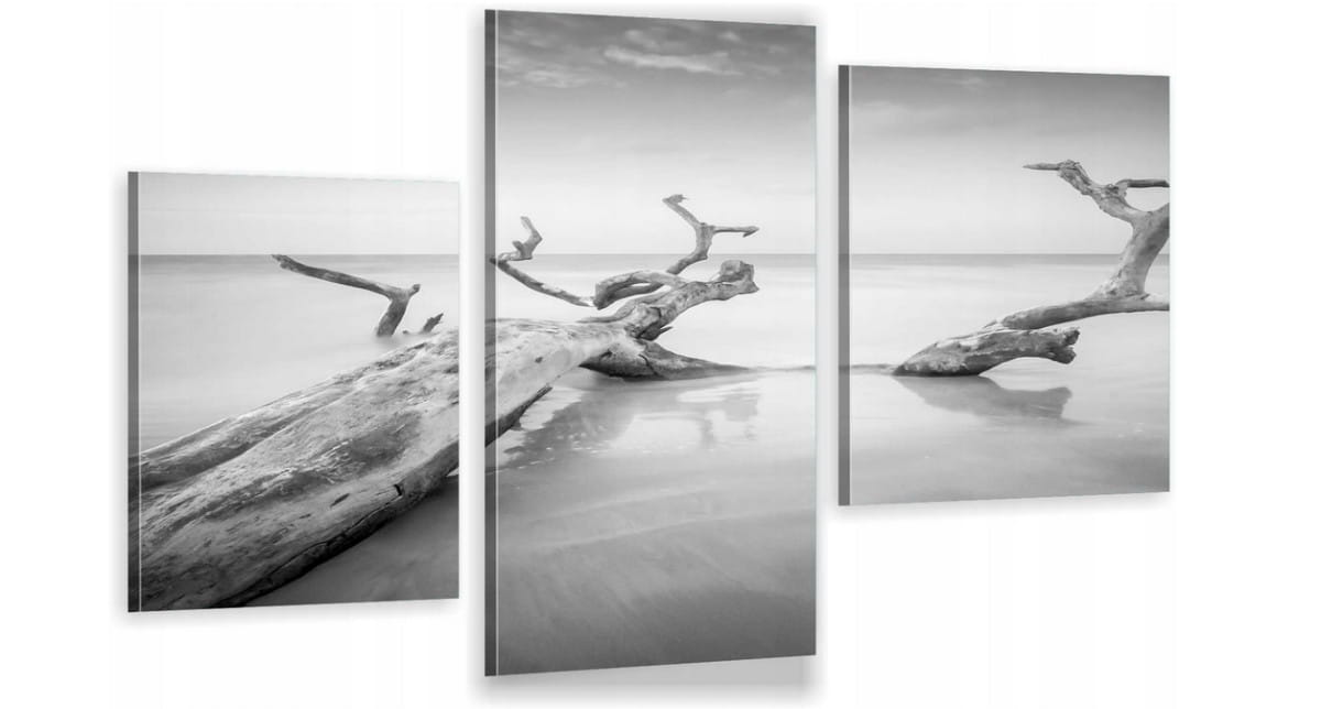 Obraz czarno biały do salonu morze fale Tryptyk na płótnie