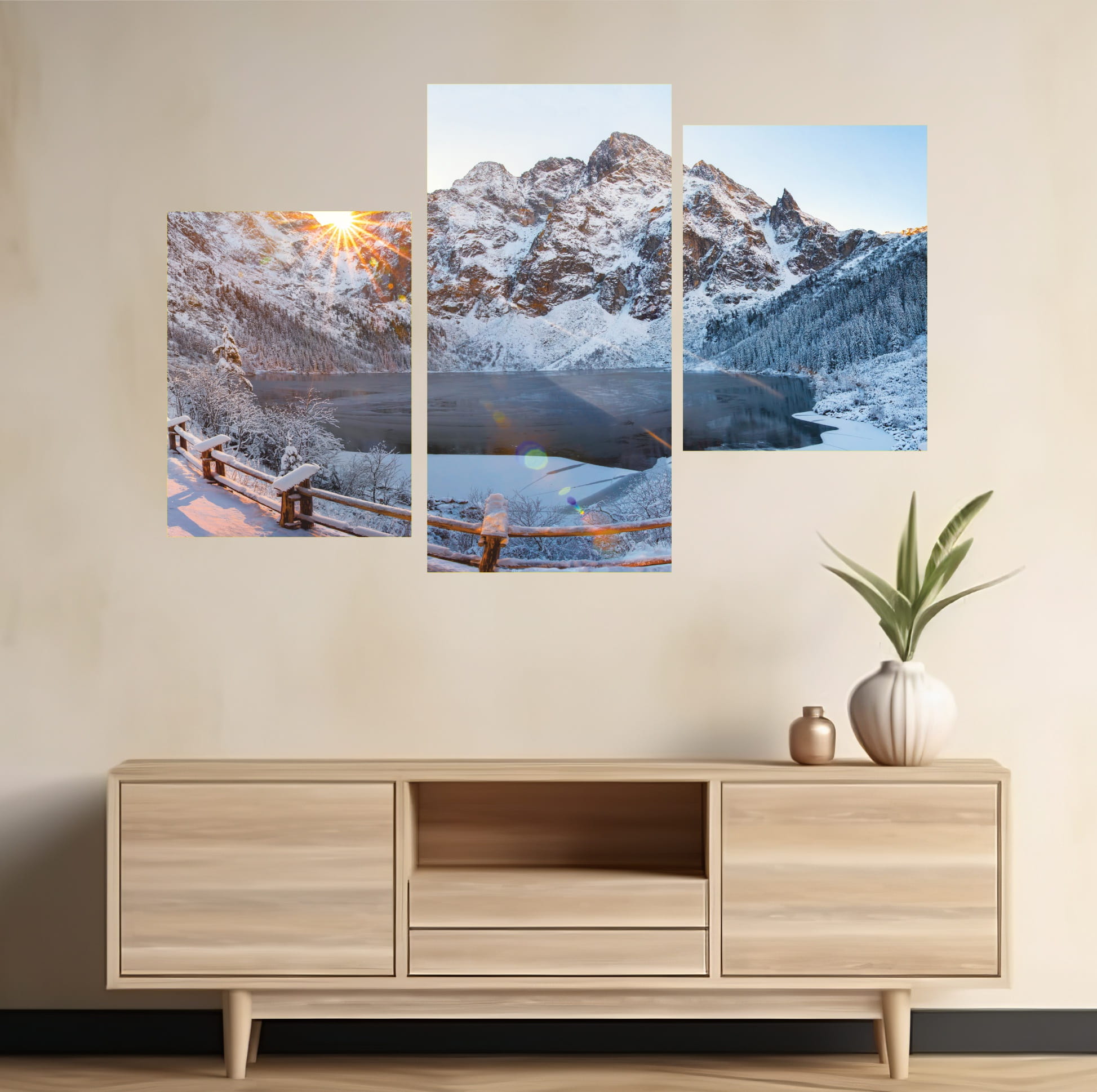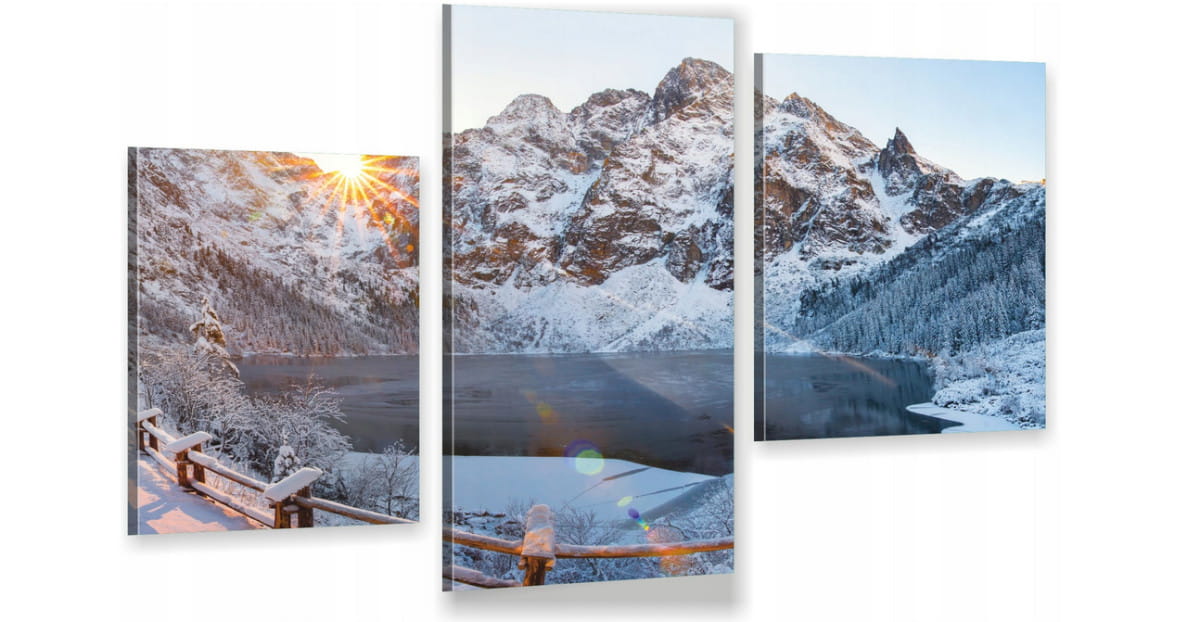 Obraz góry Morskie Oko zimą Tryptyk do salonu sypialni