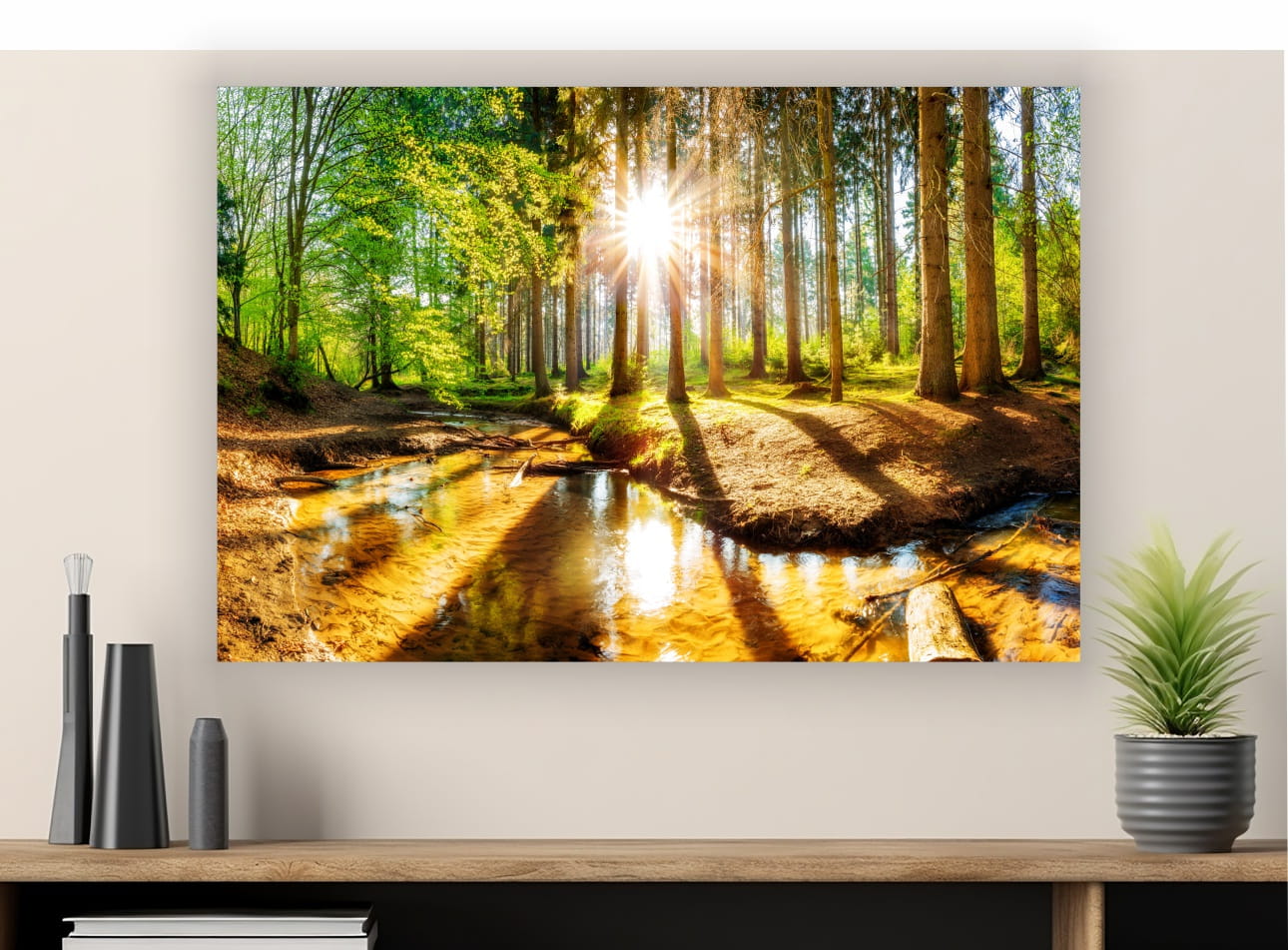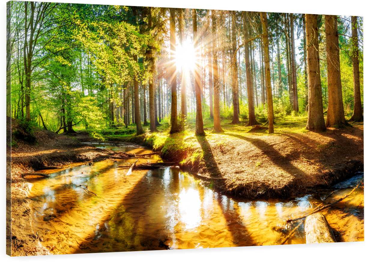 Obraz las drzewa promienie słońca na płótnie do salonu